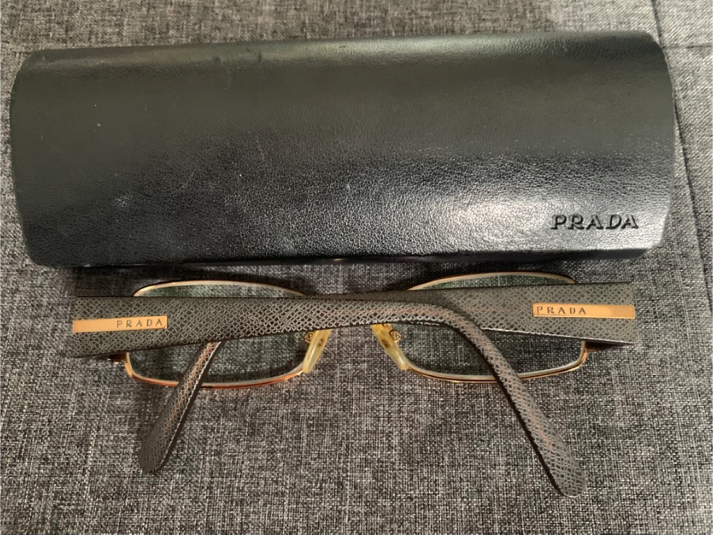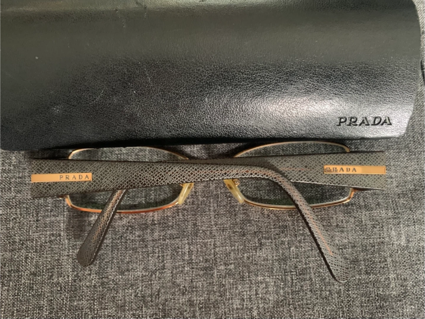 Selling a pair of Prada eyeglasses, model VPR 50I. They come with a case for safekeeping. The size is 51口17 7JY-1O1 135.