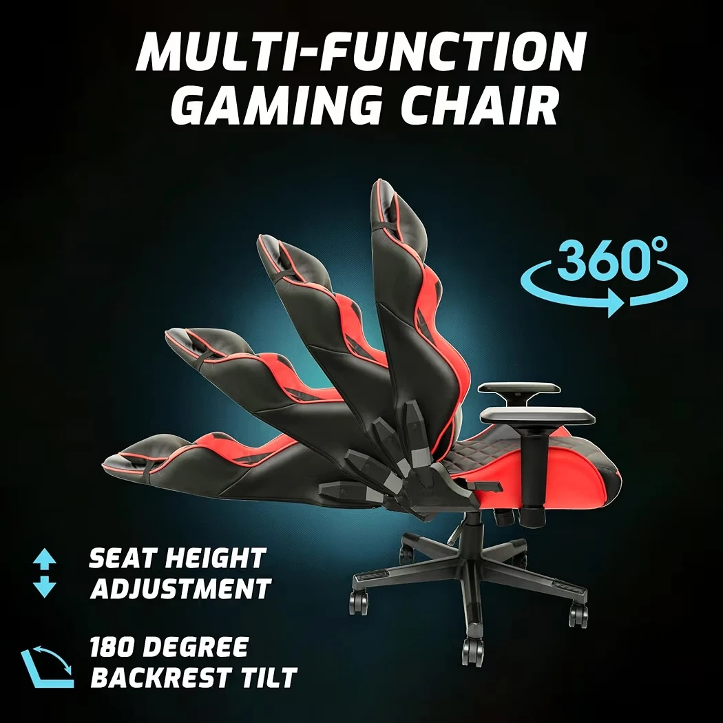 This is a MATRIX brand gaming chair in red and black. It's made with PU leather and includes lumbar support. It's designed for comfort during long gaming sessions.