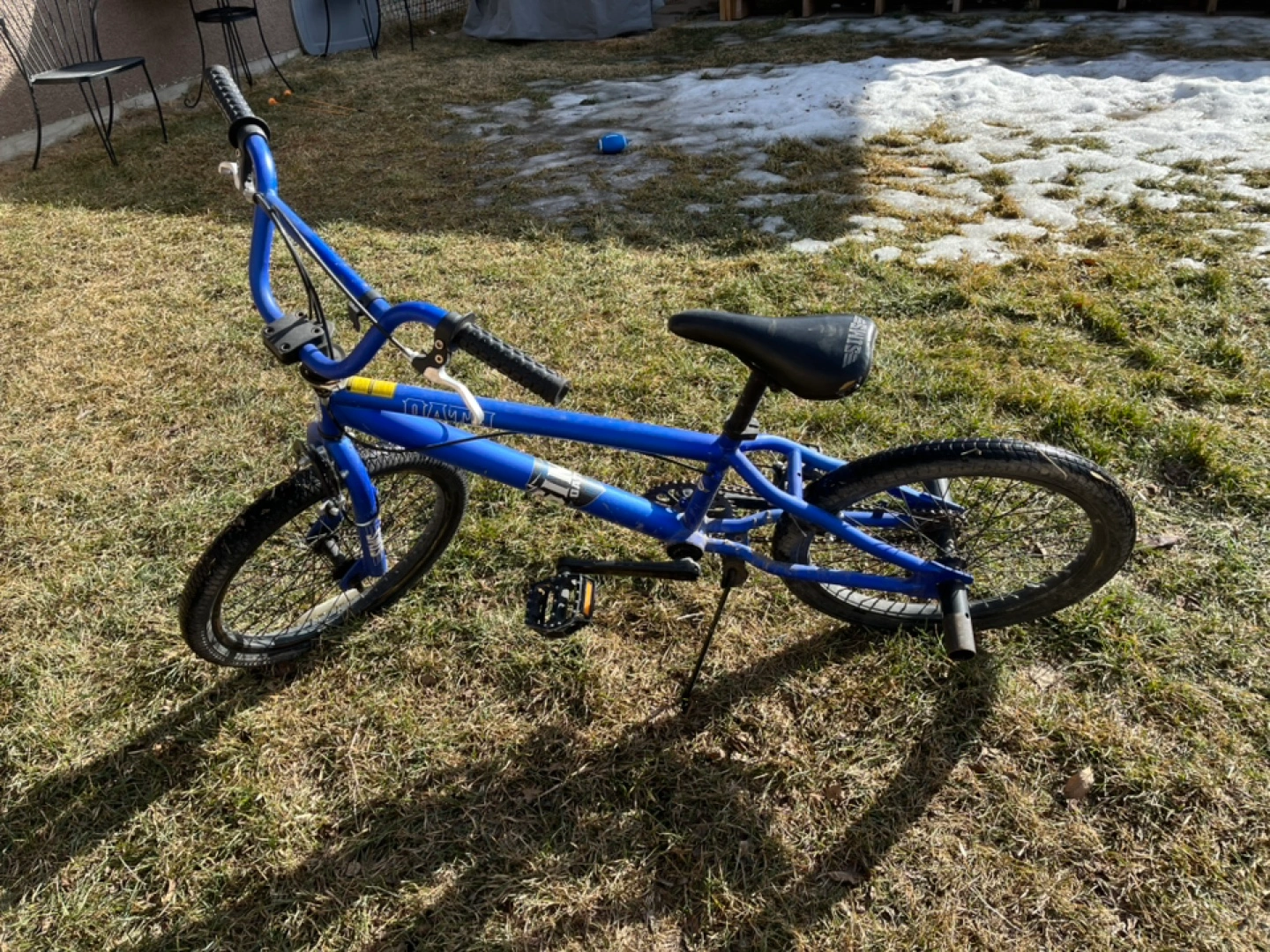 Blue kids' BMX bike. Good used condition. Ready to ride.