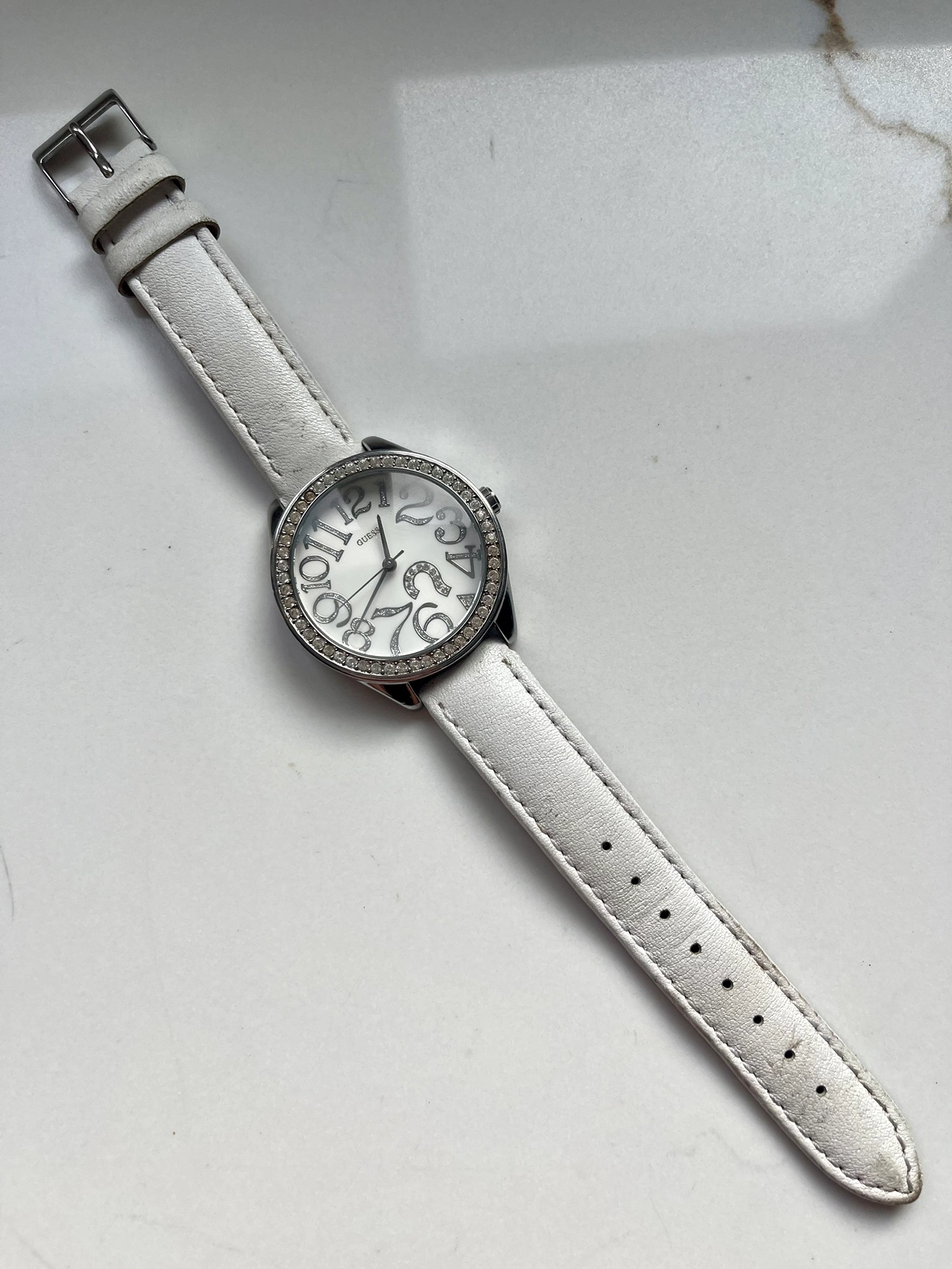 Buy & SellWomen Guess Watch G759601 White Silver Case SwarovskiWomen Guess Watch G759601 White Silver Case Swarovski$25Women's Guess watch with a white leather bandConditionGoodBrandGuessWHERE TO MEETSteeles and sixth lineView MapSELLERMaya MGeorgetown323 reviews0 chats·0 favorites·19 viewsSEND CHAT TO SELLERHi Maya M! I’m interested in your listing.Hi Maya M! I’m interested in your listing.Get the Karrot app to chatSign In to chat