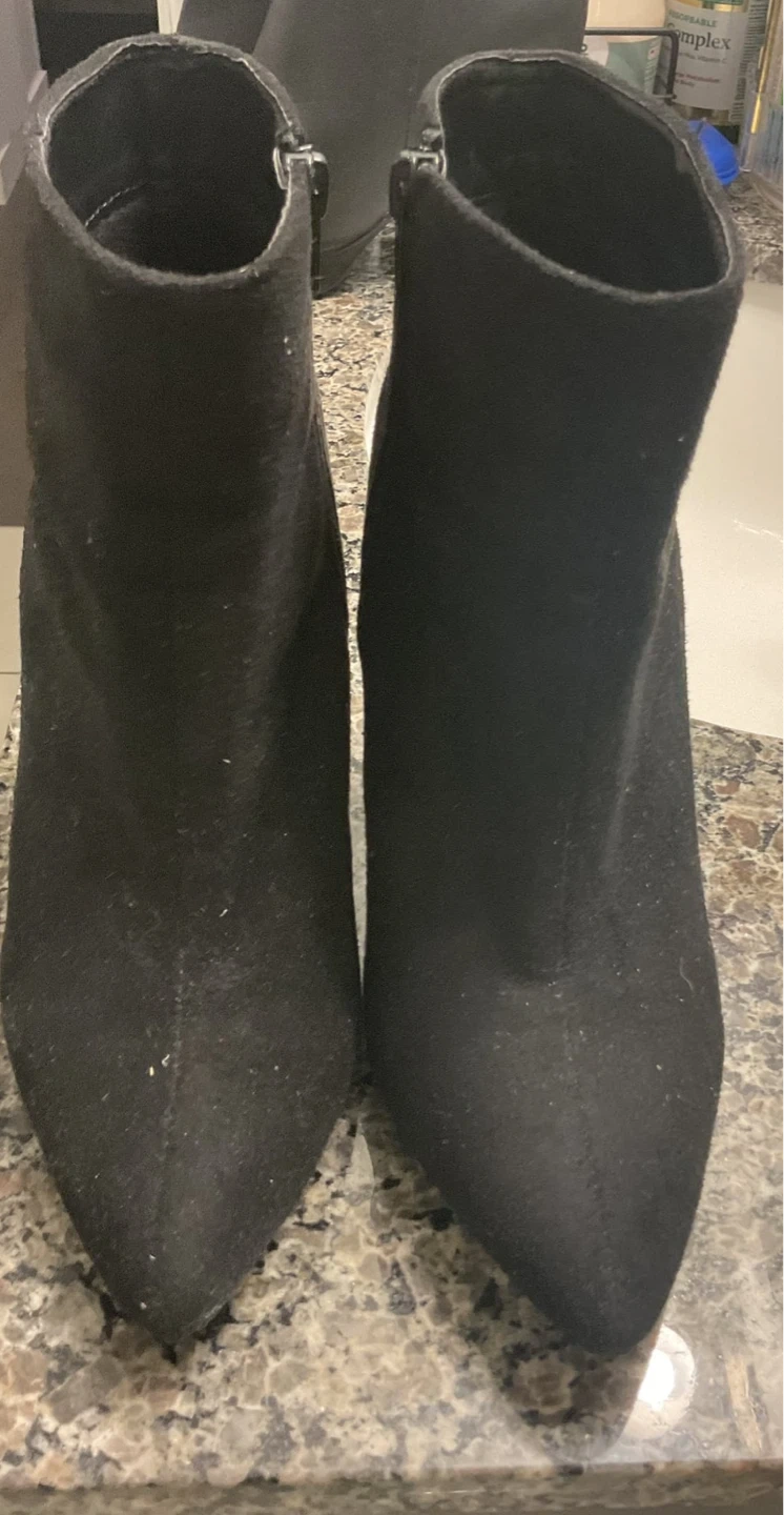 Selling a pair of black ankle boots in size 8. They have a sleek design and are perfect for adding a touch of style to any outfit. These boots are in good condition and ready for a new home!