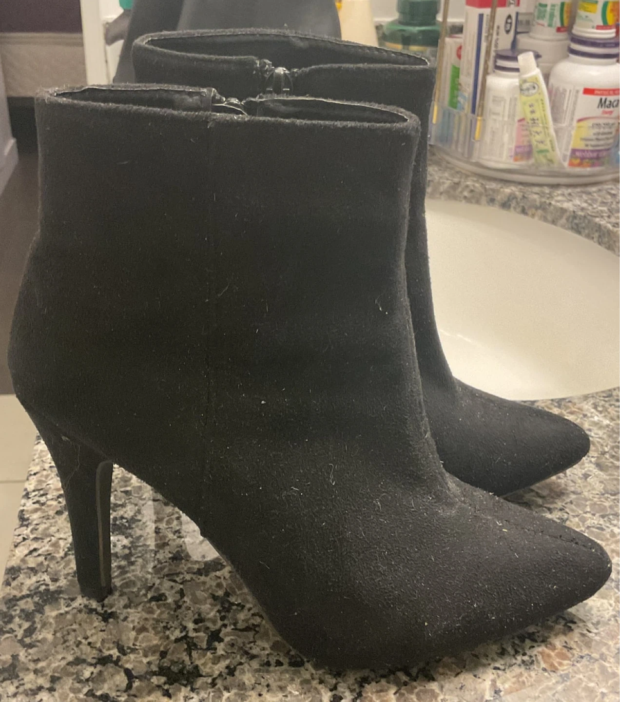Selling a pair of black ankle boots in size 8. They have a sleek design and are perfect for adding a touch of style to any outfit. These boots are in good condition and ready for a new home!