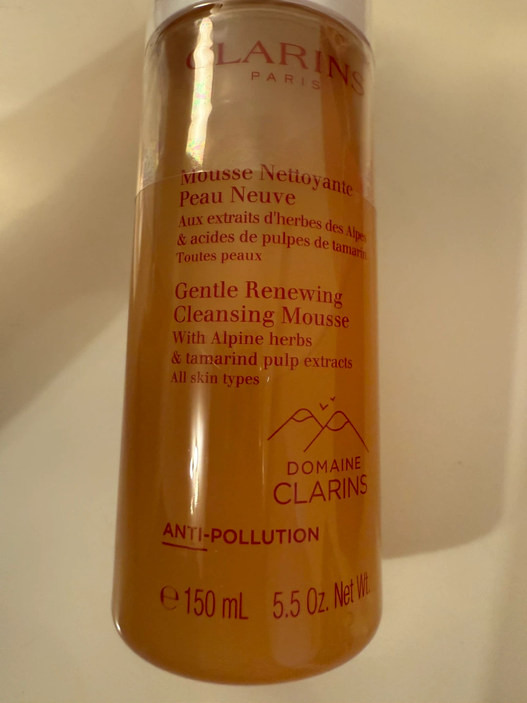 Selling a Clarins Gentle Renewing Cleansing Mousse! It's designed with Alpine herbs and tamarind pulp extracts, suitable for all skin types. This anti-pollution mousse comes in a 150 mL (5.5 Oz) bottle, perfect for your skincare routine