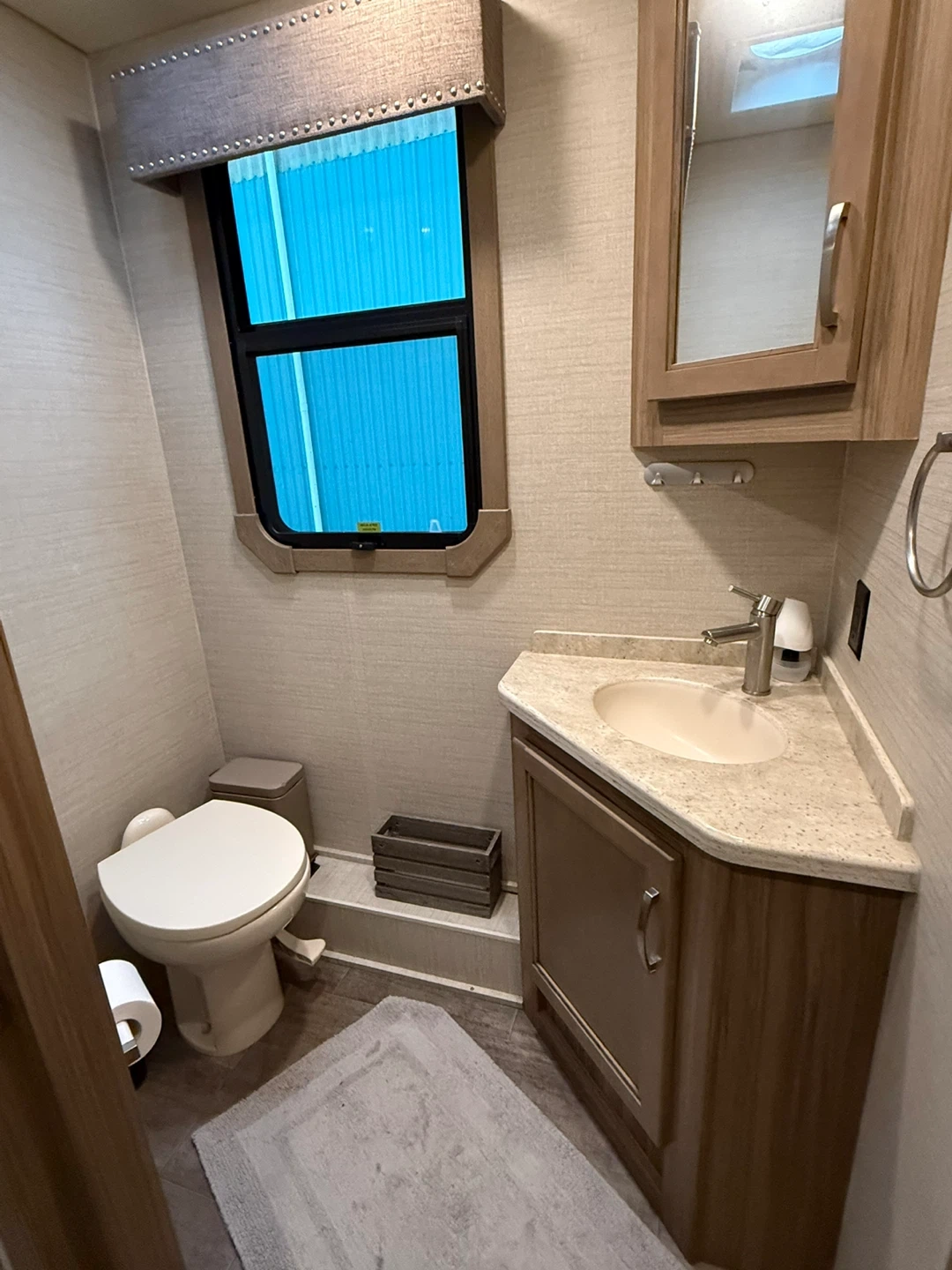 2018 Jayco Seneca 37K Super C diesel motorhome built on a Freightliner S2RV chassis, 39000 miles , featuring a 360 HP Cummins 6.7L engine, Allison transmission, and sleeps up to 8 people with two bathrooms, offering residential amenities like a full kitchen, entertainment systems, fireplace and a king bed in the master suite, alongside standard features like auto-leveling jacks, dual ACs, and ample storage, perfect for families.