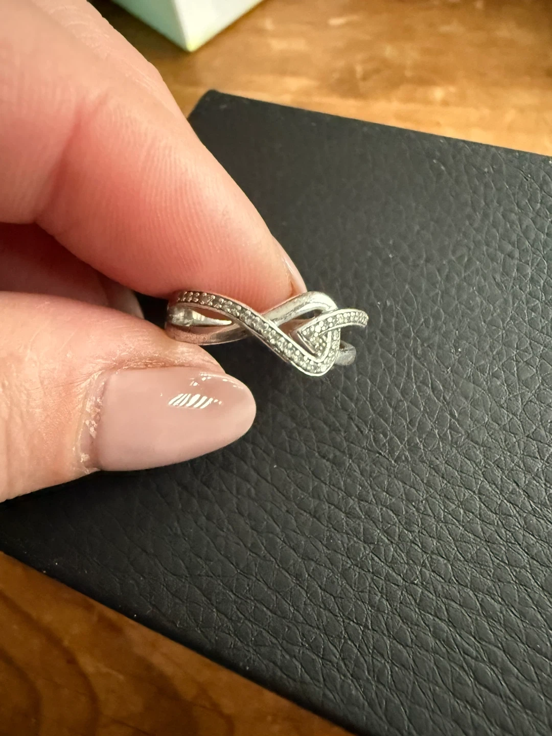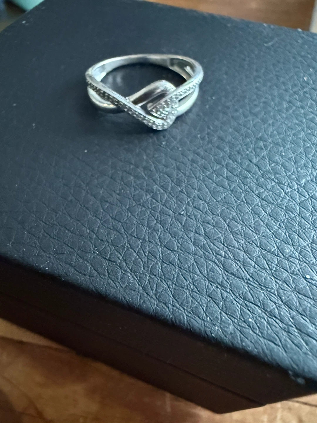Got rid of the boyfriend now it’s time to get rid of the gifts. This sterling silver ring features a stylish infinity knot design encrusted with small cubic zirconia stones. It's a beautiful piece for everyday wear or as a thoughtful gift. This ring offers a touch of sparkle to any outfit!