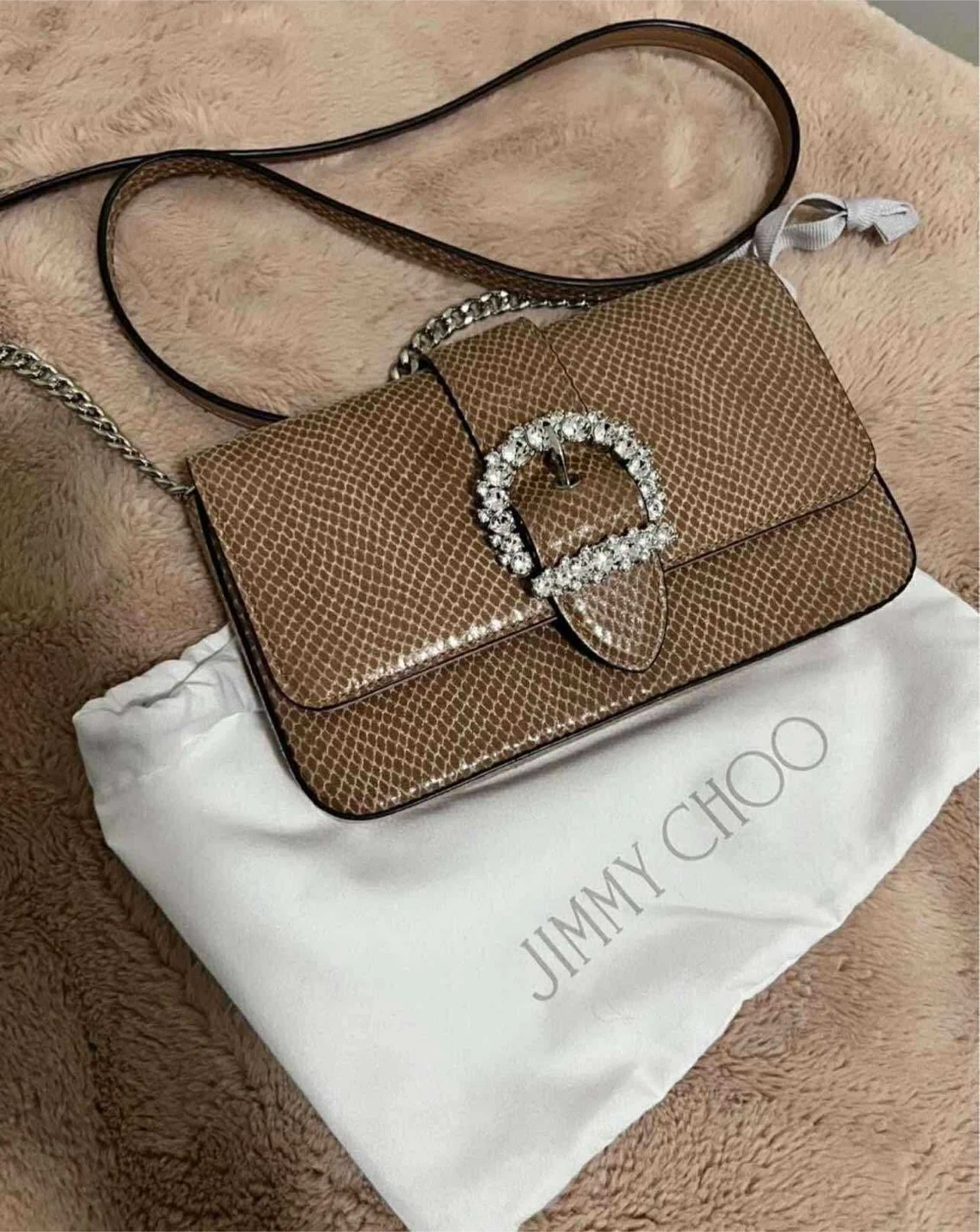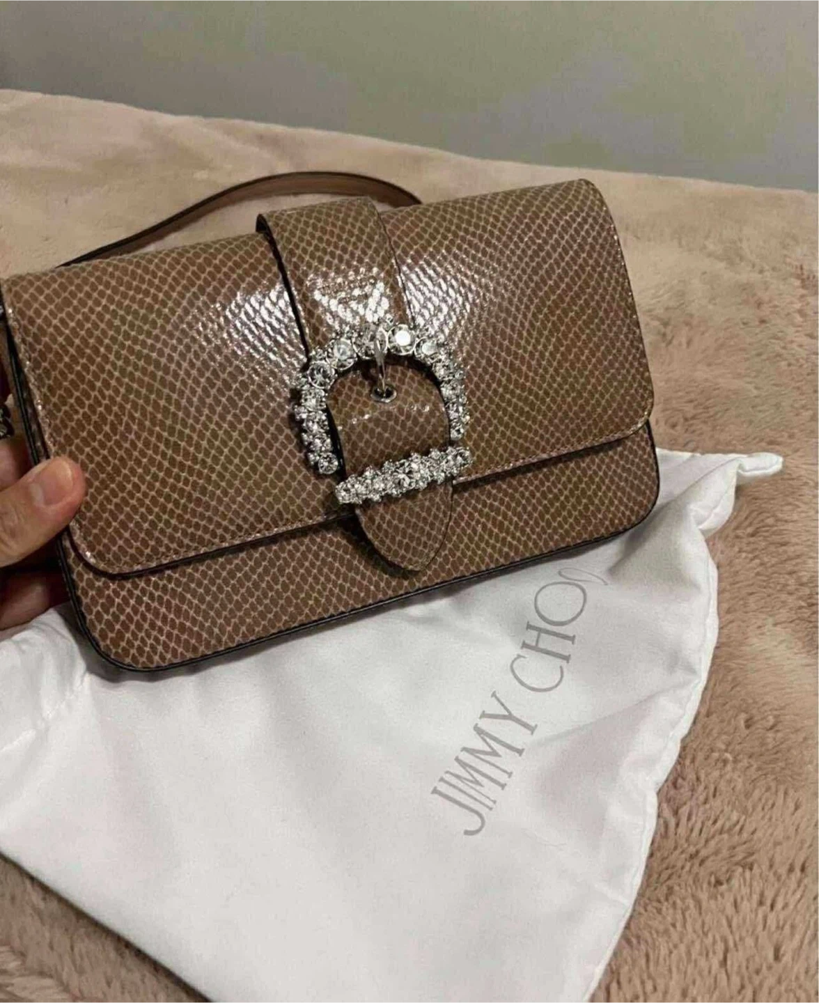Buy & SellJimmy Choo BagJimmy Choo Bag$750Selling a Jimmy Choo bag! It's a beautiful brown snakeskin with a crystal buckle. Comes with the original dust bag and certificate of authenticity.ConditionNewBrandJimmy ChooWHERE TO MEETtrace manes parkView MapSELLERverifiedMariaLeaside681 review0 chats·1 favorites·15 viewsSEND CHAT TO SELLERHi Maria! I’m interested in your listing.Hi Maria! I’m interested in your listing.Get the Karrot app to chatSign In to chat