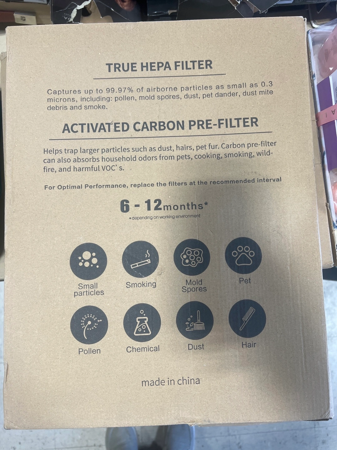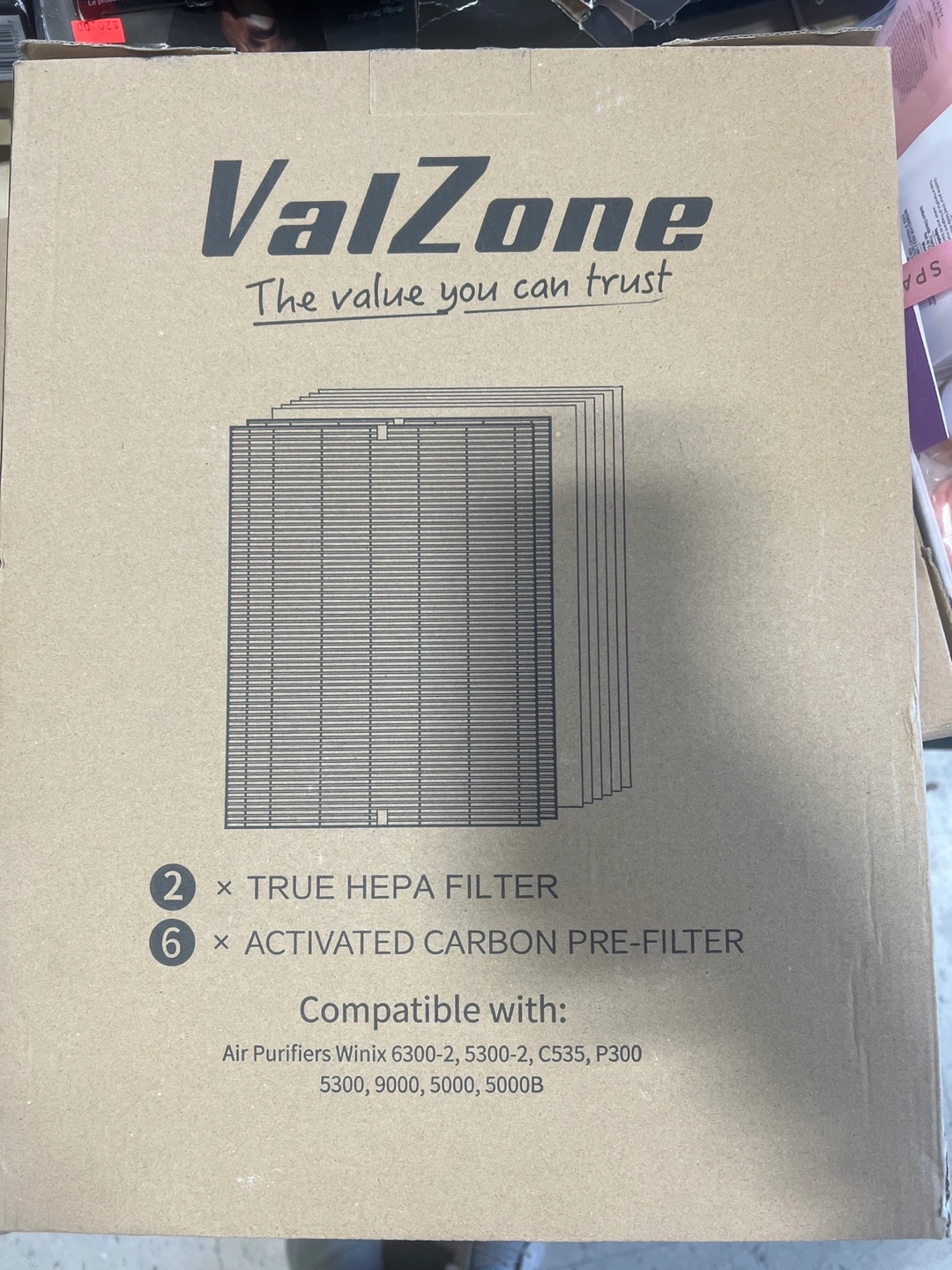 New in box. Two true HEPA filters and six activated carbon pre-filters. Compatible with Winix air purifiers 6300-2, 5300-2, 5300, C535, P300, 5300, 9000, 5000, 5000B. Captures small particles, pollen, mold spores, pet dander, dust mite debris, and smoke. Traps larger particles such as dust, hairs, pet fur. Made in China.