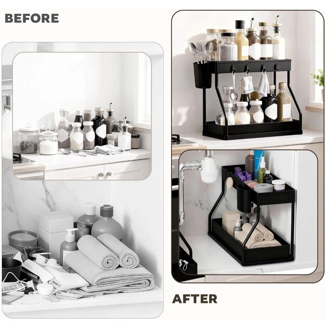 2 PACKS Under Sink Organizers and Storage with Sliding Drawer, 2-Tier Bathroom Under Sink Shelf Rack, Multi-Functional Cabinet Storage Space Saver For Kitchen, Bathroom and Bedroom.