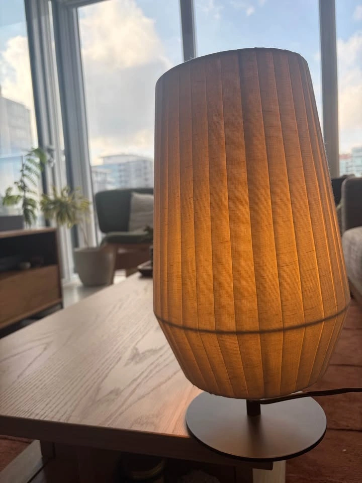 Bouclair Linen Table Lamp with Metal Base.