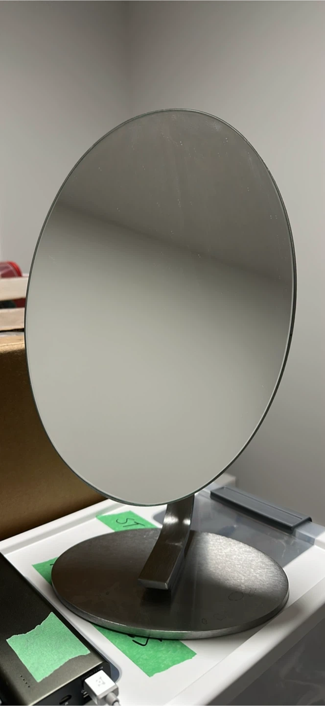 Sleek and modern tabletop mirror with a sturdy brushed metal stand.