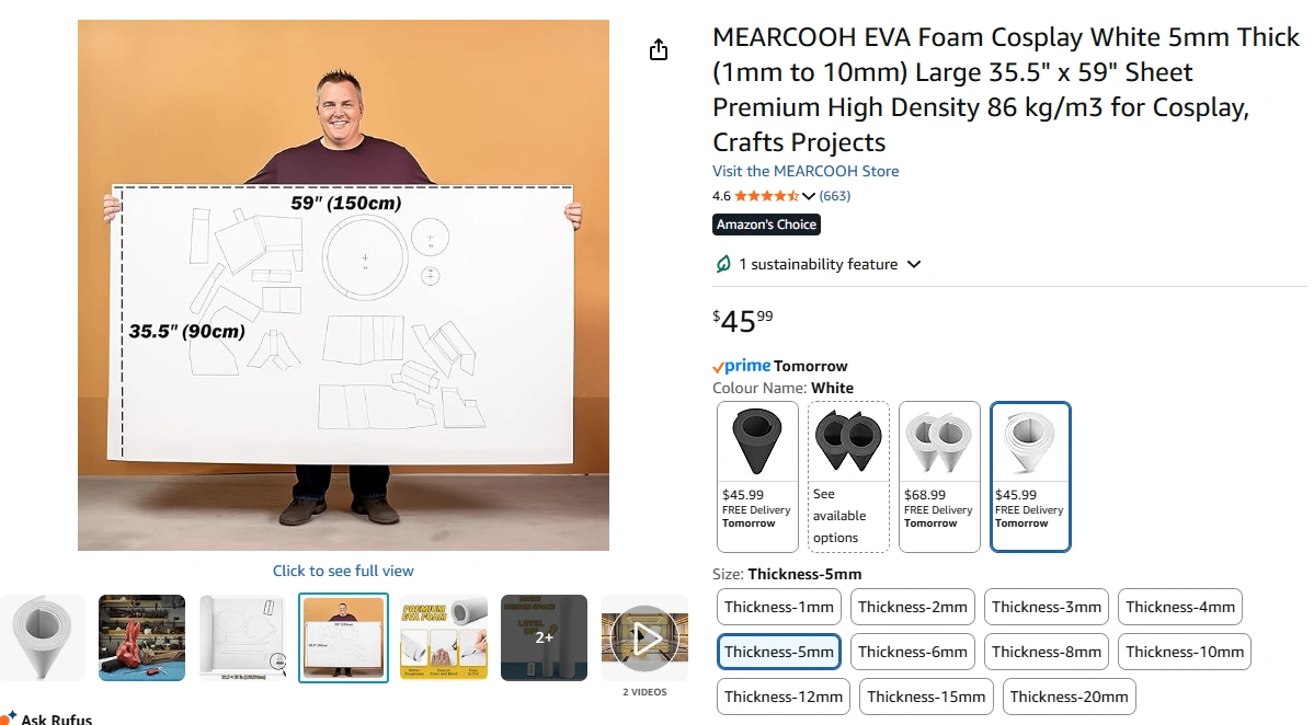 Selling a roll of MEARCOOH Large EVA Foam. It's white, and measures 35.5 x 59 inches, with a thickness of 5mm. Great for crafting or any project needing a bit of cushion!