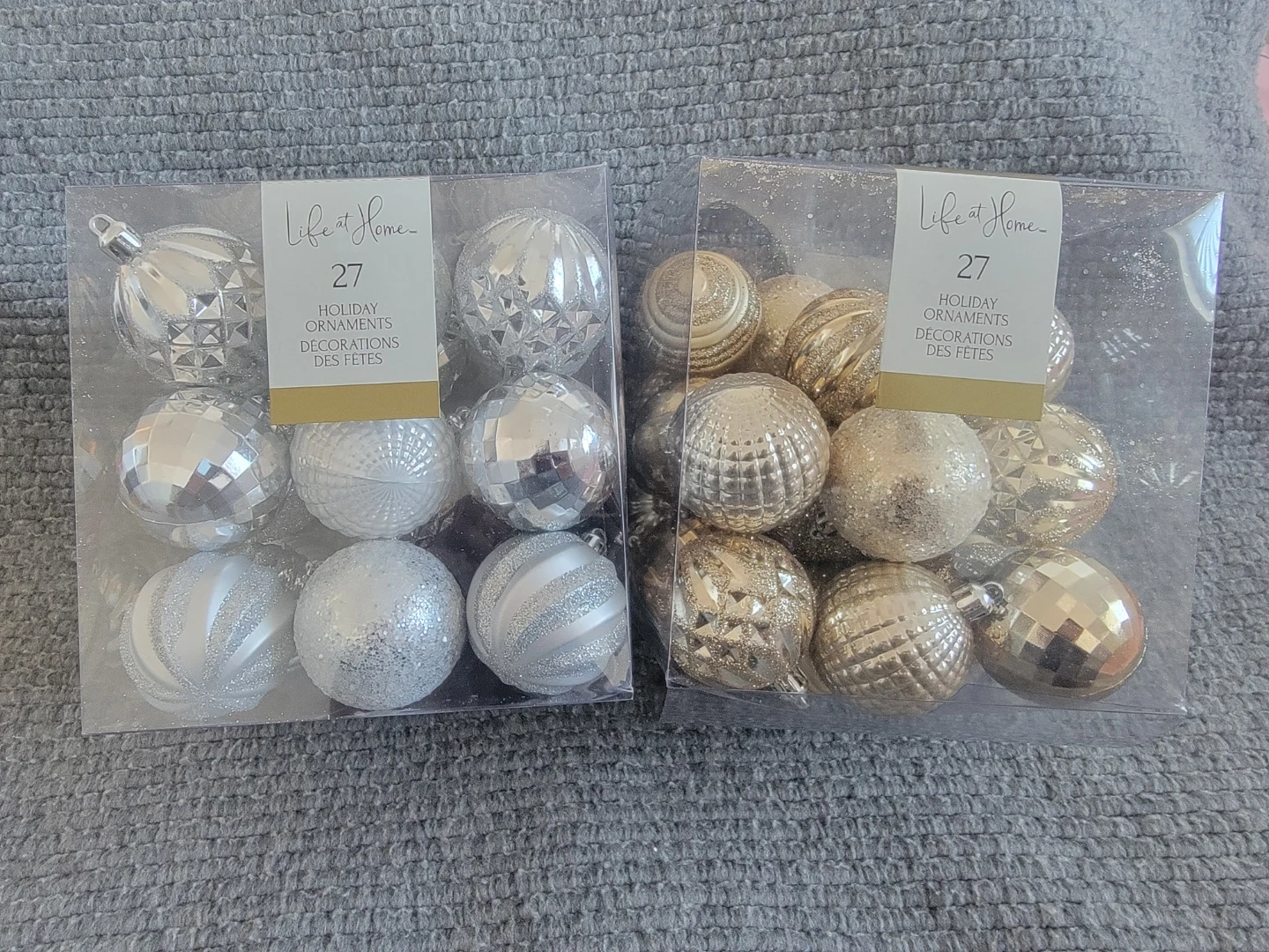 Life at Home offers a set of 27 holiday ornaments. These decorative balls come in both silver and gold finishes. They're perfect for decorating your Christmas tree! $5 each or 2 for 8