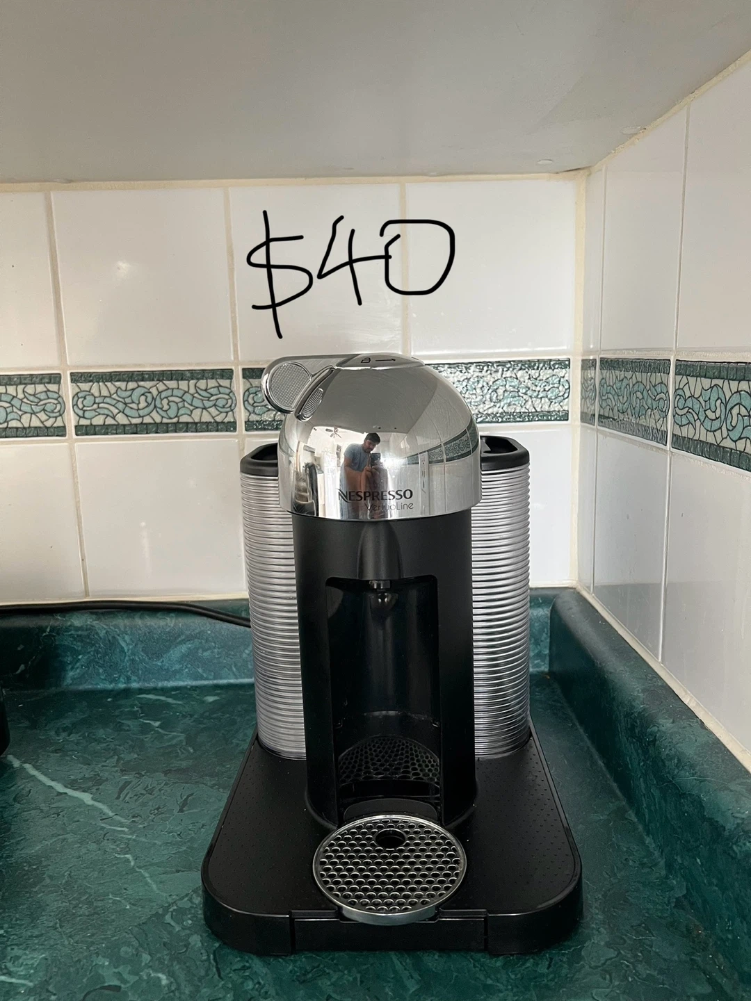 Buy & SellNespresso VertuoLine Coffee MachineNespresso VertuoLine Coffee Machine$36This is a Nespresso VertuoLine coffee machine. It's black and silver with a chrome accent on top. It makes coffee and espresso.ÉtatLike newBrandNespressoWHERE TO MEETHomeView MapSELLERverifiedAbhiBanff Trail661 review0 chats·0 favorites·8 viewsSEND CHAT TO SELLERHi Abhi! I’m interested in your listing.Hi Abhi! I’m interested in your listing.Get the Karrot app to chatSign In to chat