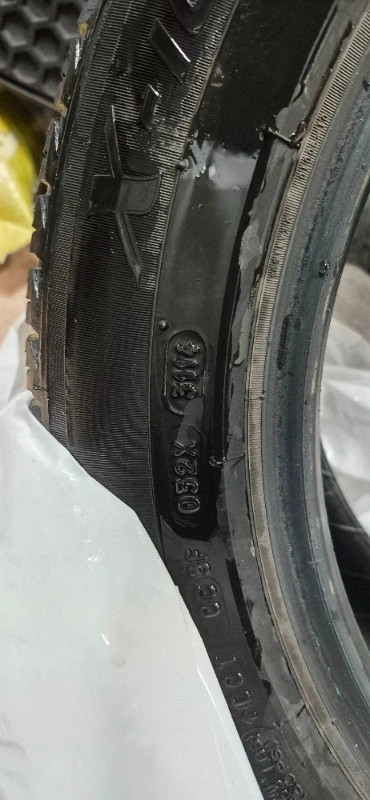 I had a flat tire on one side so I had to change out both tires on my rear wheels. See the pictures for information about the date code and tread depth.