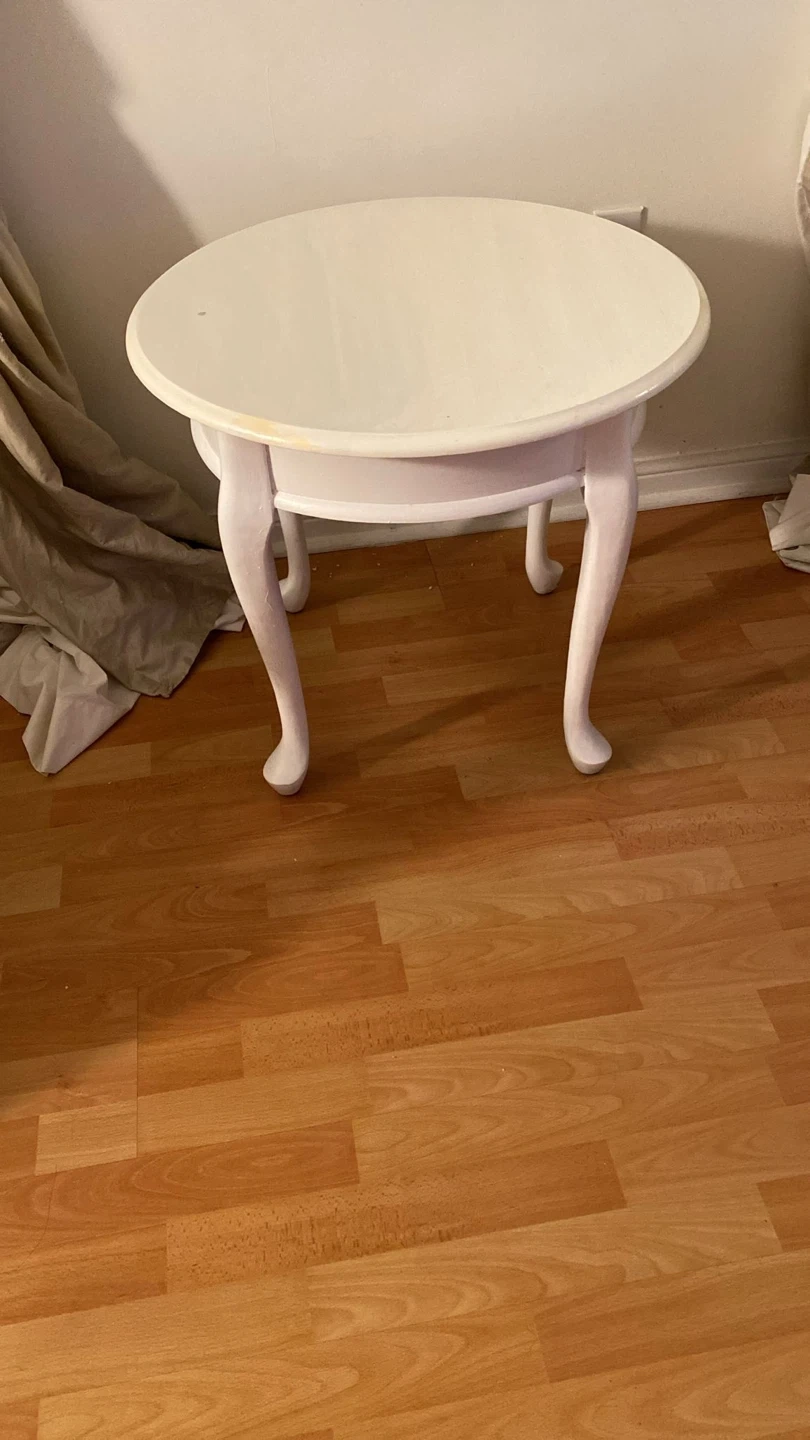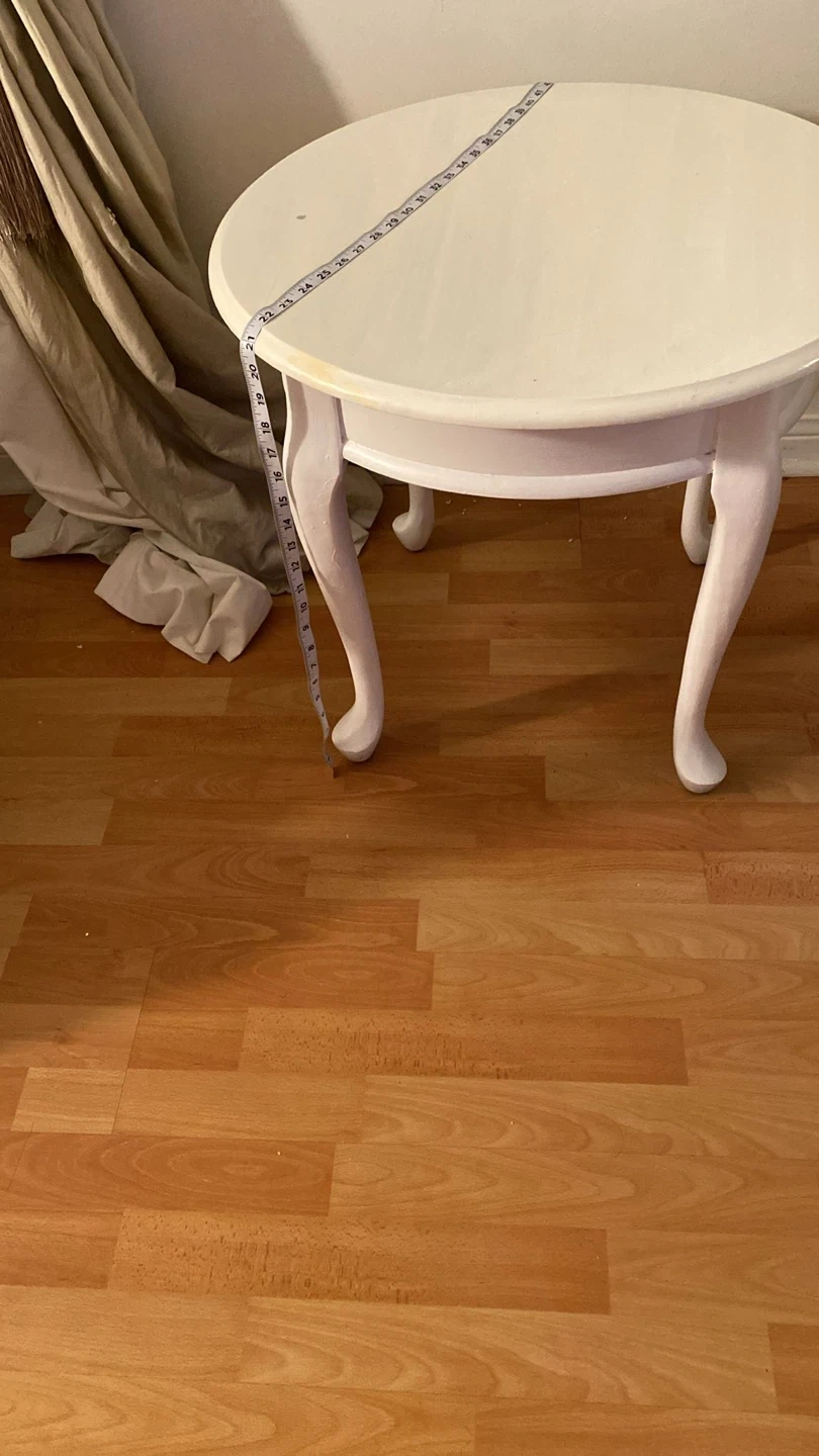 Selling a cute round side table! It's white and in great shape. The table top measures approximately 23 inches in diameter and the height is about 22 inches