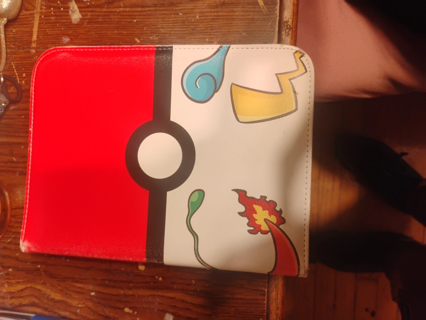 This is a Pokemon trading card binder. It features a Pokeball design on one side and various Pokemon characters on the other. It's perfect for organizing and displaying your Pokemon card collection!