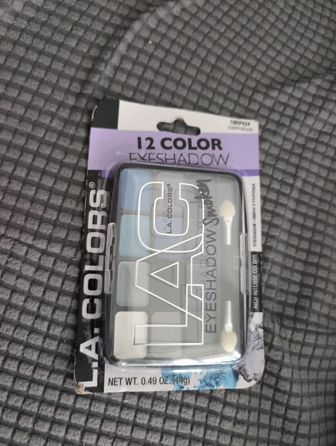 L.A. Colors 12 Color Eyeshadow palette in a cool tone selection. Includes two applicators for easy application. The net weight is 0.49 oz (14g).