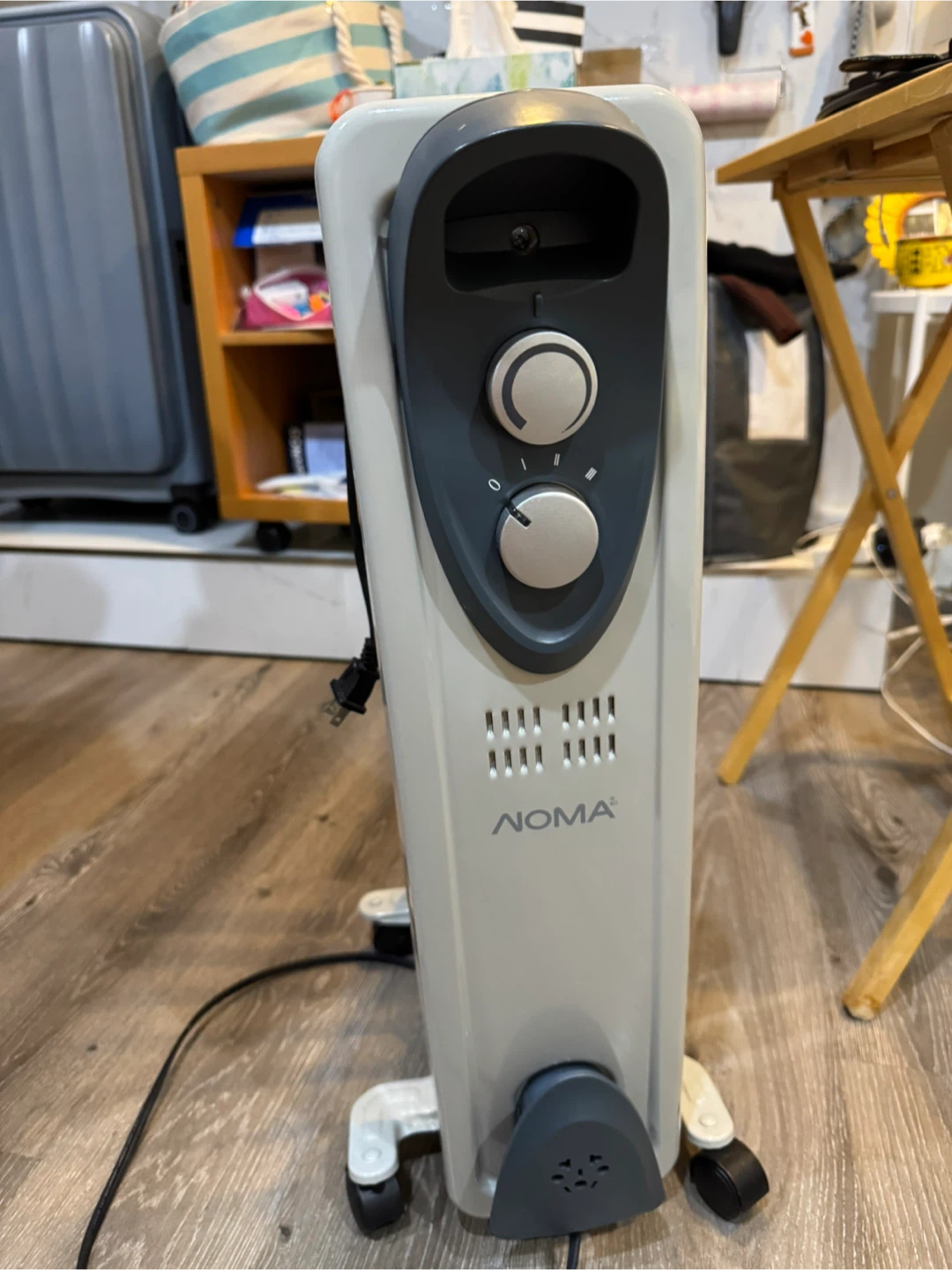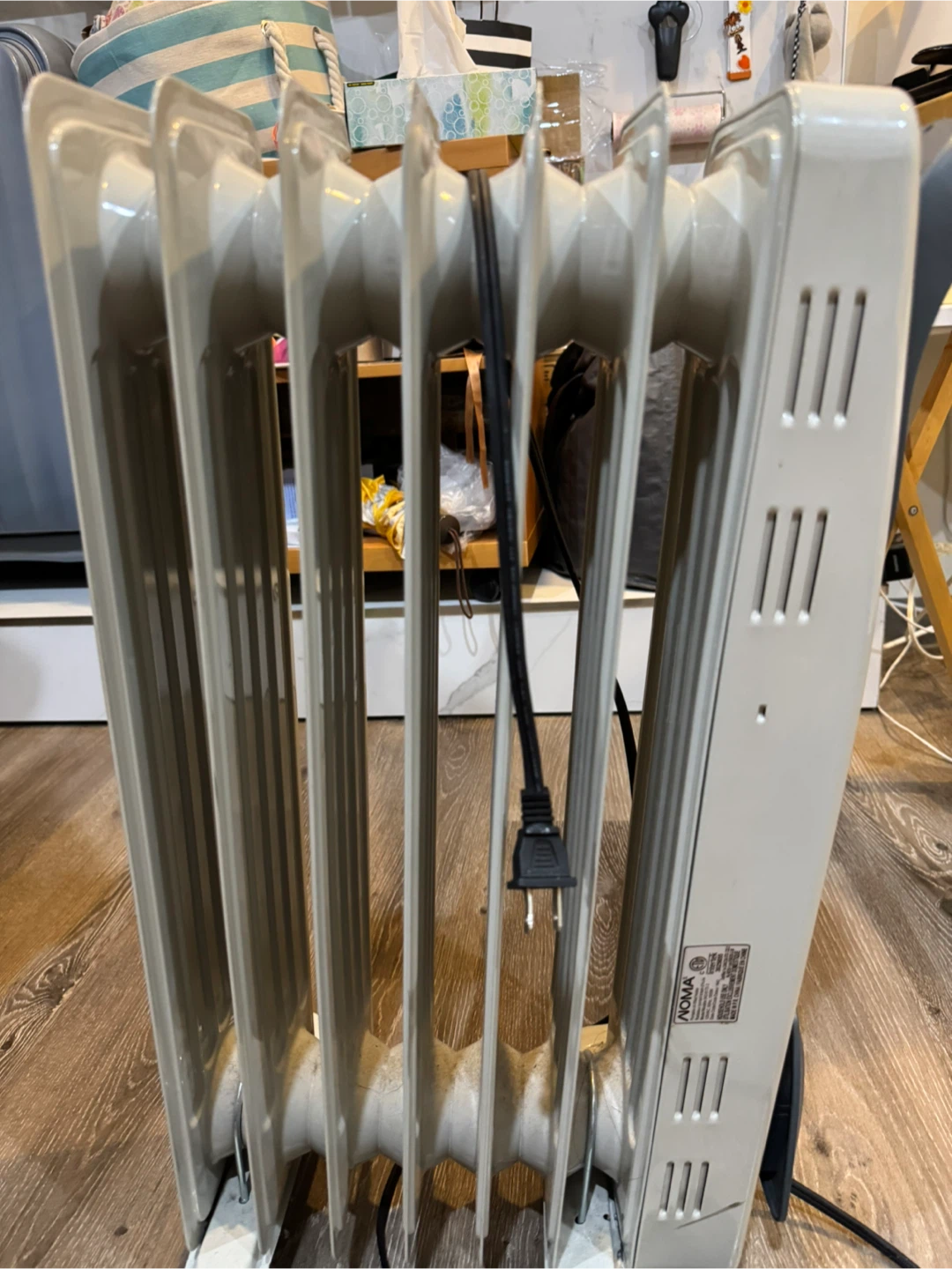 Selling a NOMA oil-filled radiator heater. It's in great condition and ready to keep you warm this winter! It features adjustable temperature settings and is easy to move around with its built-in wheels. Perfect for heating small to medium-sized rooms