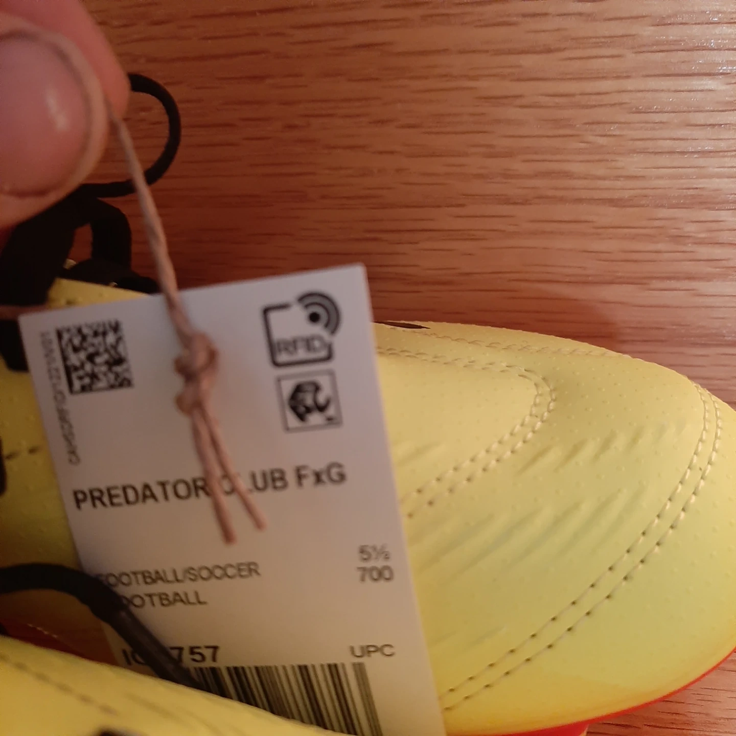 Brand new Adidas Predator Club FxG cleats for football or soccer. Size is 5.5Y. Neon yellow colour with black accents and red sole details. These are designed for firm ground play.
