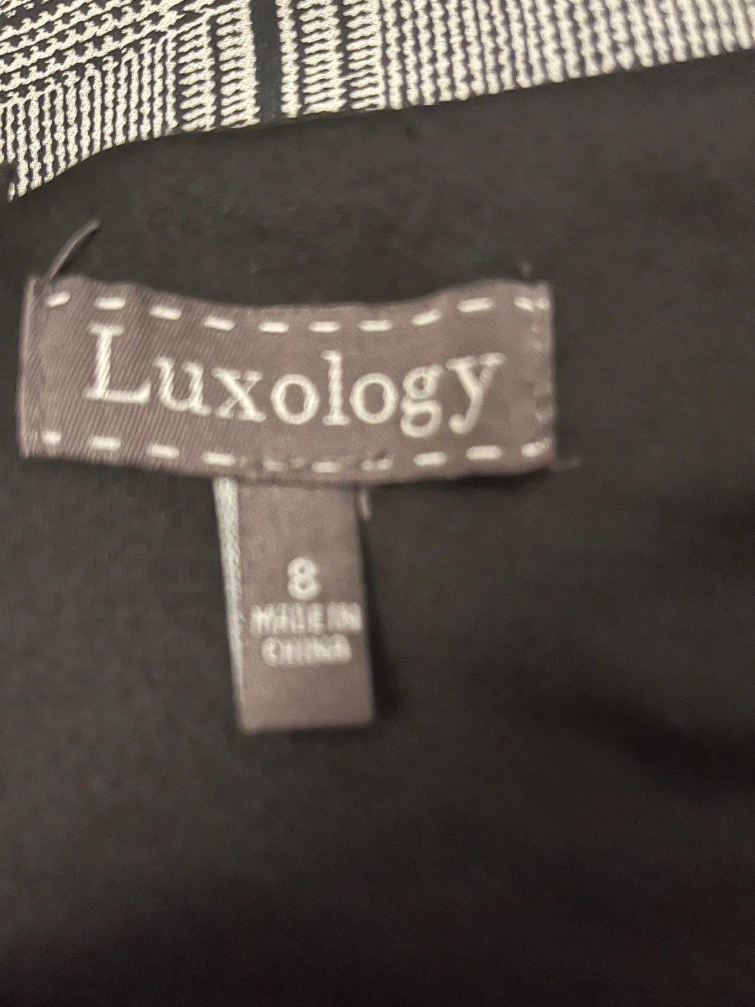 This Luxology shift dress features a classic plaid pattern and long sleeves. It's a size 8 and made in China. Great for a casual or dressed-up look!