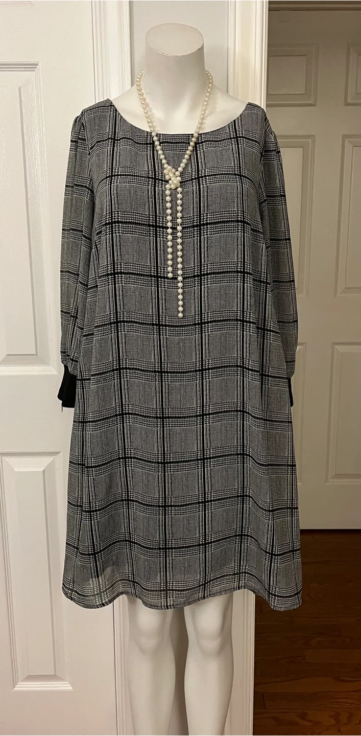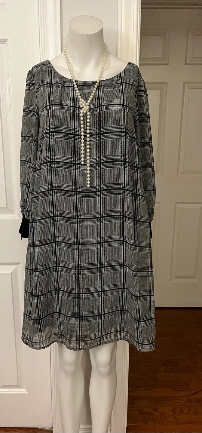 Luxology Plaid Long Sleeve Shift Dress Size 8