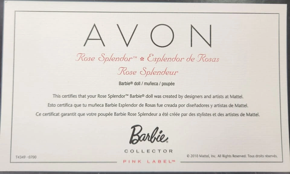 Rose Splendor Barbie - Barbie Collector Pink Label - Avon