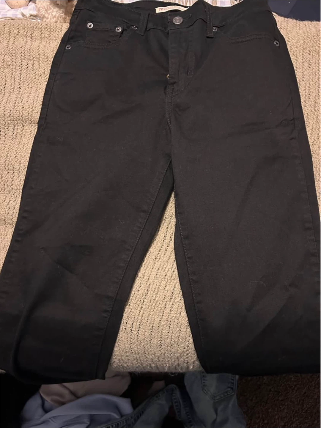 Classic Levi's 751 jeans in black. Button fly closure. Made with durable denim material. A versatile staple for any wardrobe!