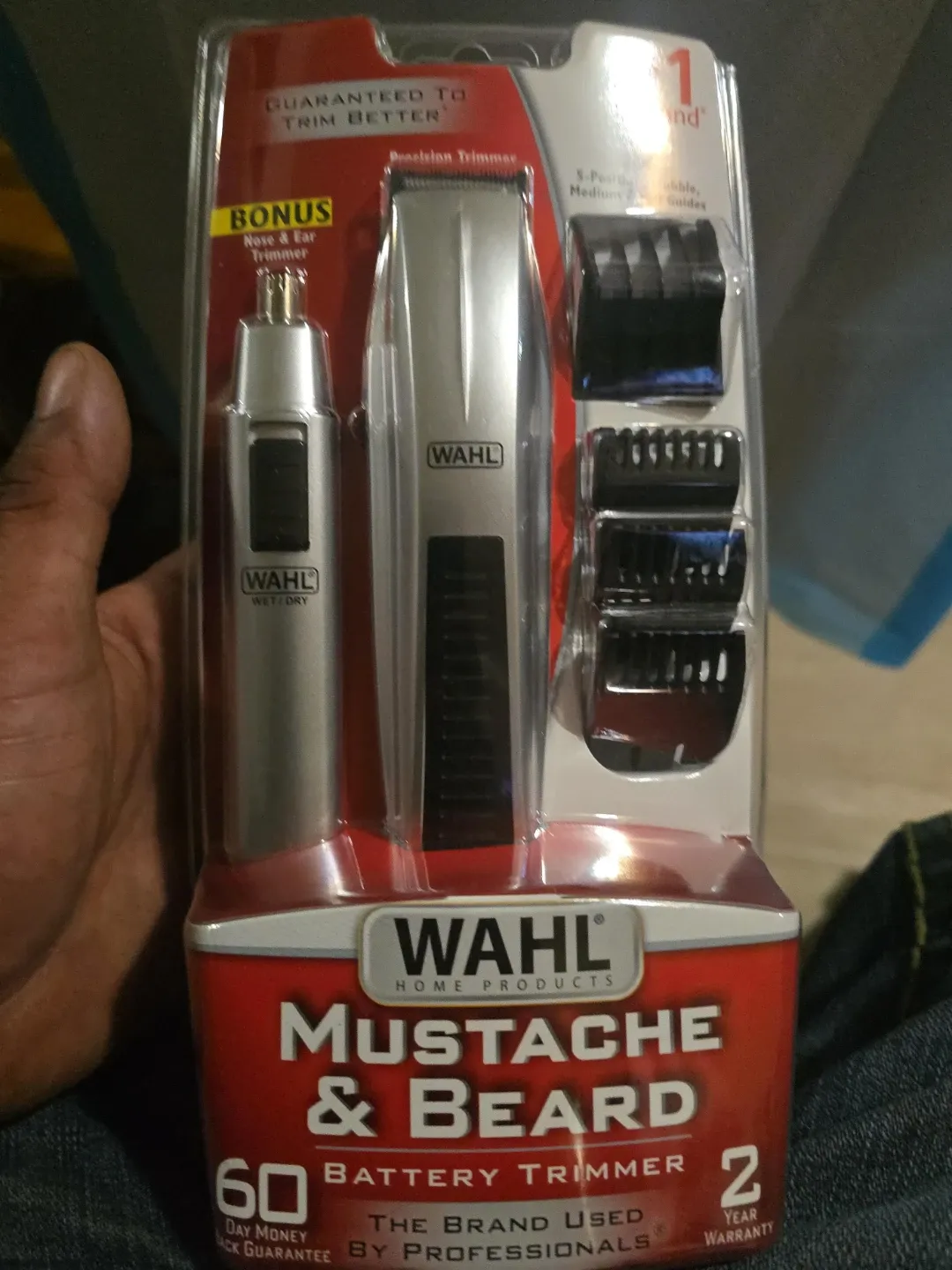 I'm selling a brand new Wahl Mustache & Beard Battery Trimmer! It comes with a bonus nose and ear trimmer. The trimmer is guaranteed to trim better and is the brand used by professionals. It also comes with 3-position stubble, medium, and full beard guides