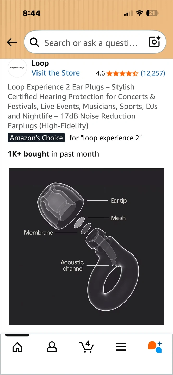 Loop Experience 2 earplugs offer stylish, high-fidelity hearing protection. They feature an acoustic channel and ear tips for a comfortable fit. These earplugs reduce noise by 17dB, making them suitable for concerts and busy environments.