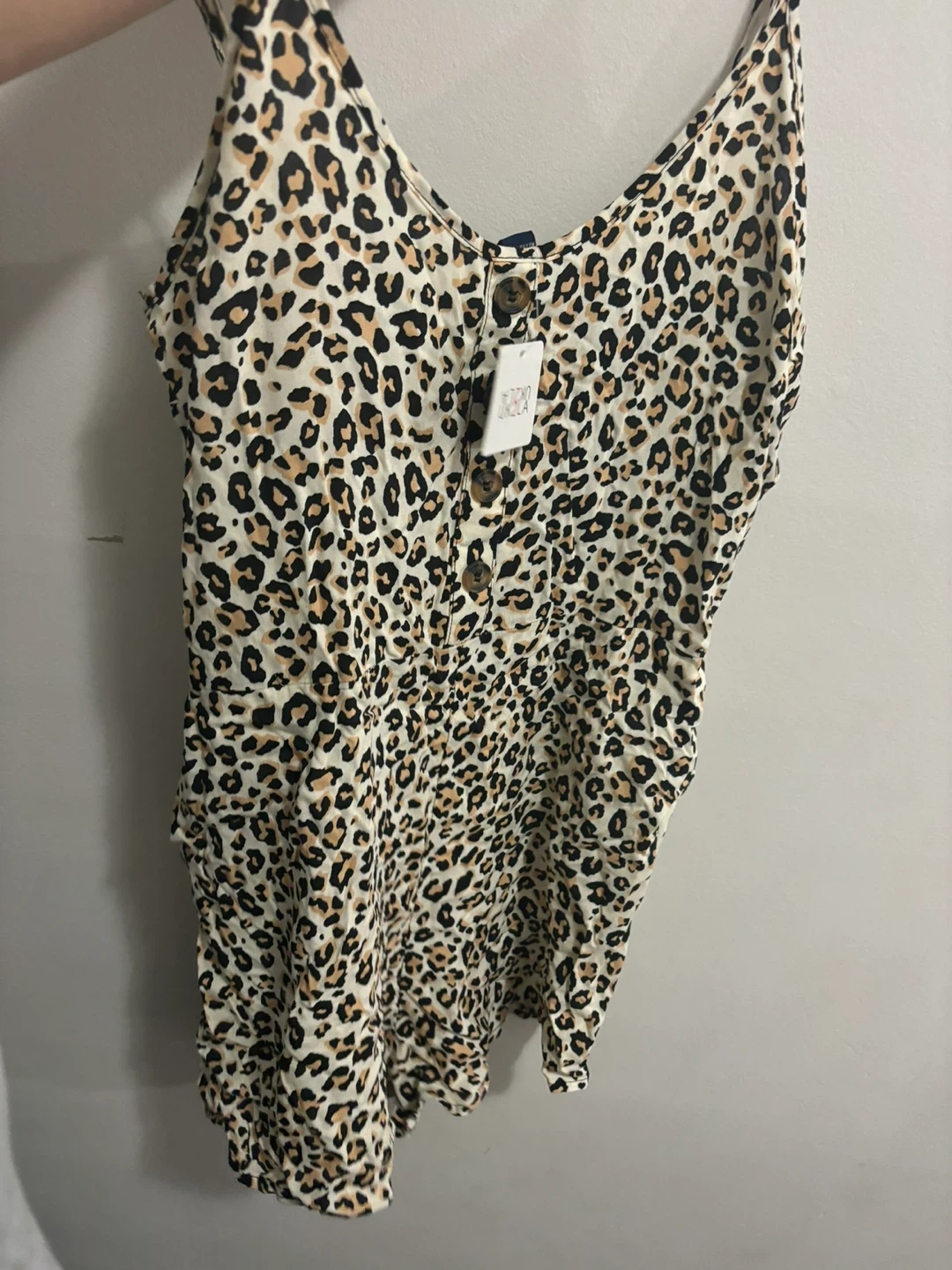 Cat & Jack leopard print romper. Button-up front detail. Size medium. Perfect for casual wear!