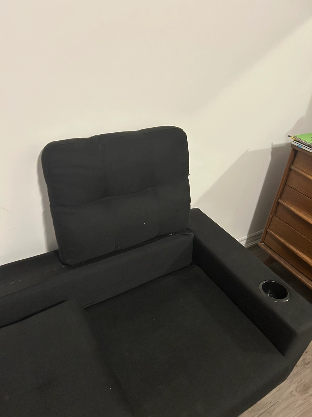 Black Couch with Cup Holders