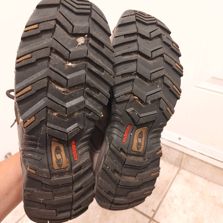 shoes, size 8.5 These shoes are designed for outdoor adventures with durable construction. They feature a grippy Contagrip sole for excellent traction on various terrains.