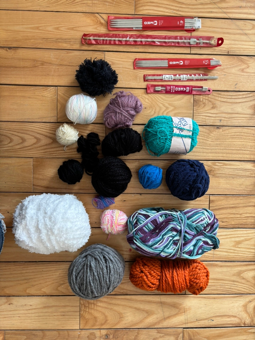 Large bundle of various colours and textures of yarn. Includes several balls of different weights and types. Also, a set of ChiaoGoo knitting needles. Perfect for your next project!