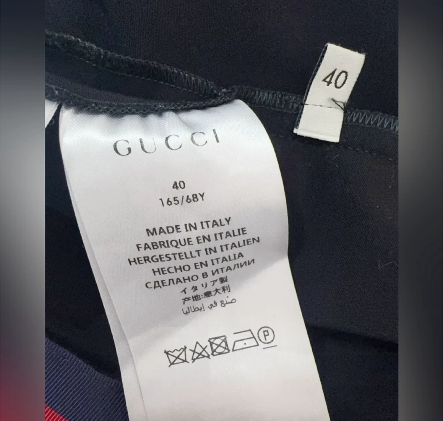 Gucci Women's Black Trousers Red and Blue Stripe Detail Size 40