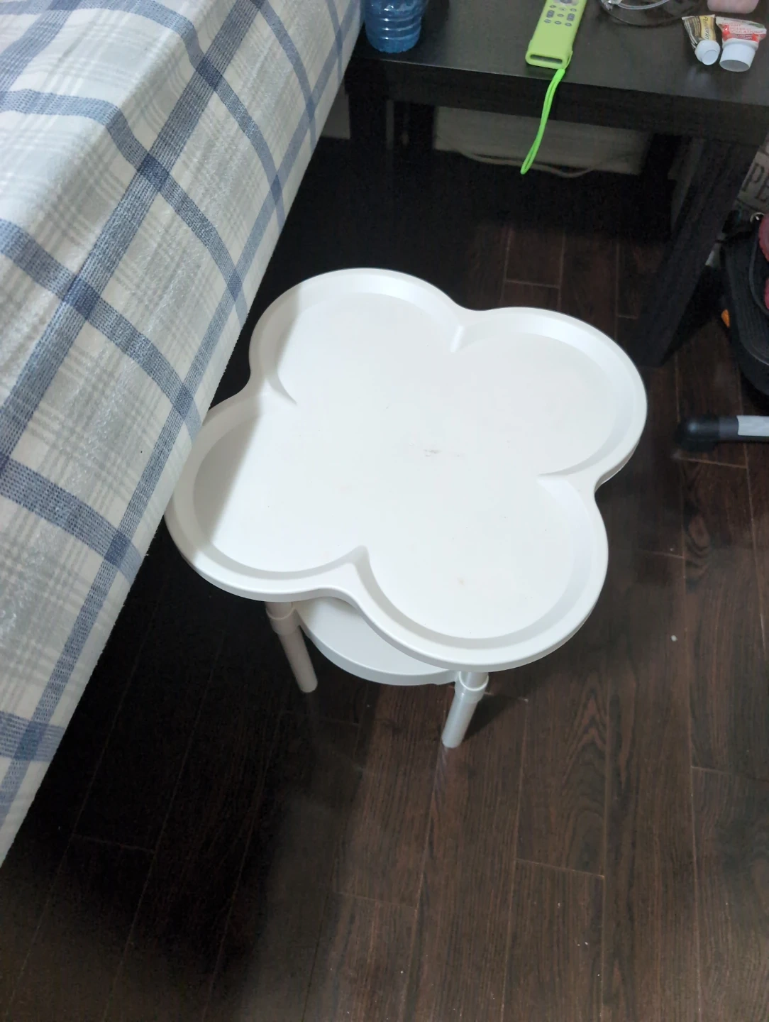 π Cute White Clover-Shaped Plastic Bedside Table / Nightstand β Lightweight & Durable β $18 (PRICE NEGOTIABLE )