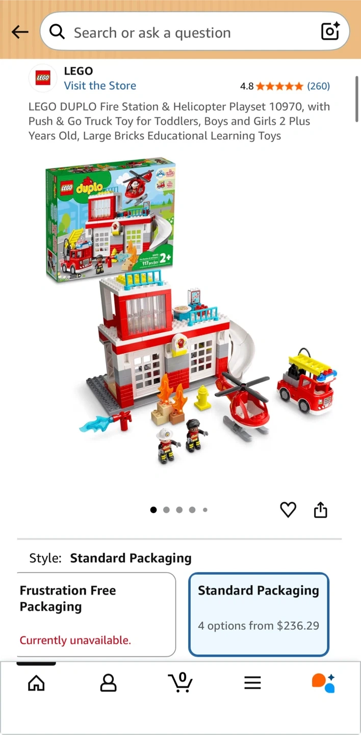 This LEGO DUPLO playset includes a fire station with a helicopter and a push & go truck. It features large bricks for toddlers and kids aged 2 years and up. It's a fun educational learning toy for little ones interested in emergency vehicles and rescue missions!