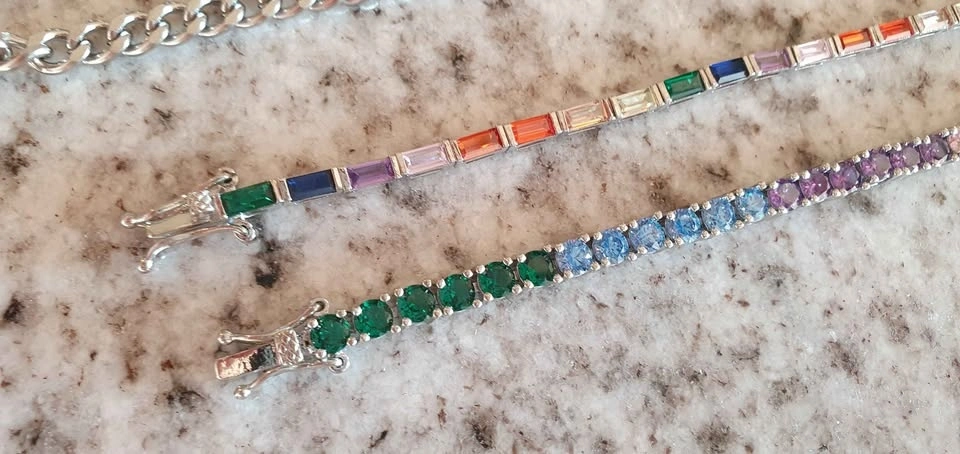 Hello Ice rainbow tennis bracelets and stainless chain