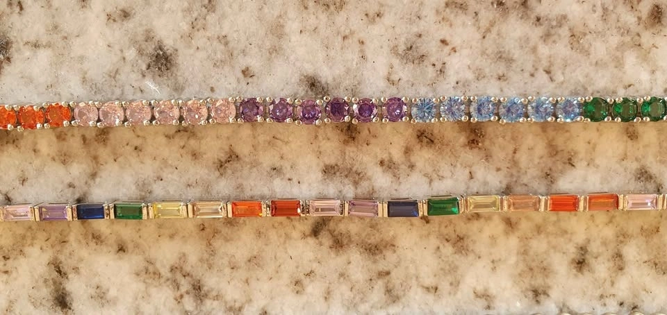 Hello Ice rainbow tennis bracelets and stainless chain