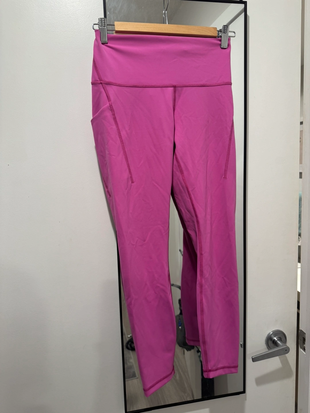 Selling a pair of Lululemon leggings in a vibrant pink colour! They're a size 8 and in great condition. Perfect for workouts or just lounging around!