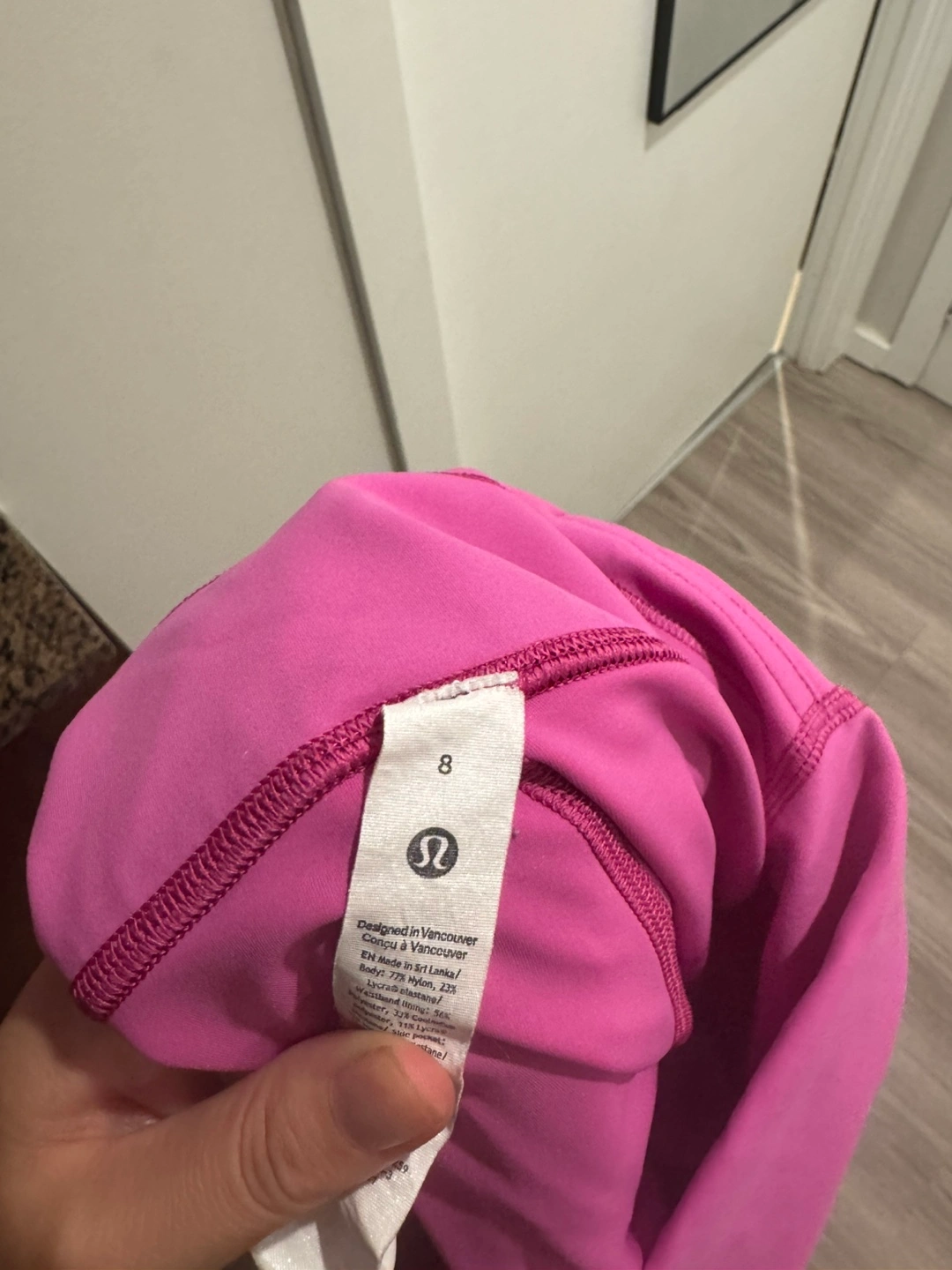 Selling a pair of Lululemon leggings in a vibrant pink colour! They're a size 8 and in great condition. Perfect for workouts or just lounging around!
