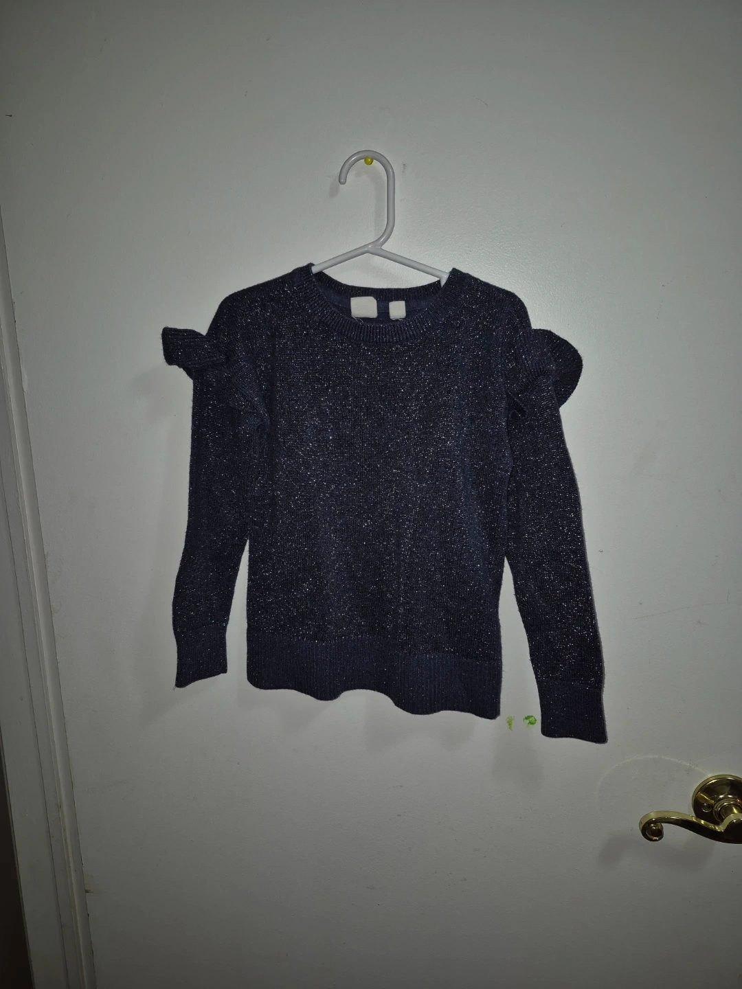 Cute GAP Kids sweater in size 6-7! It's a navy blue colour with a bit of sparkle. Perfect for layering or wearing on its own. Pick up Mississauga Area or Brampton Area