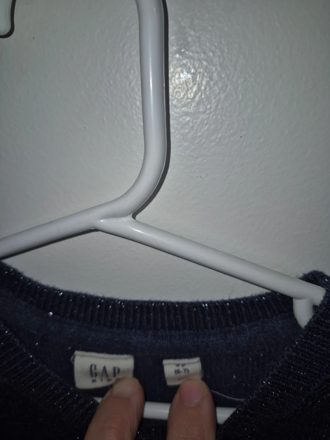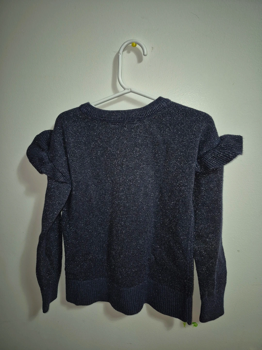 Cute GAP Kids sweater in size 6-7! It's a navy blue colour with a bit of sparkle. Perfect for layering or wearing on its own. Pick up Mississauga Area or Brampton Area