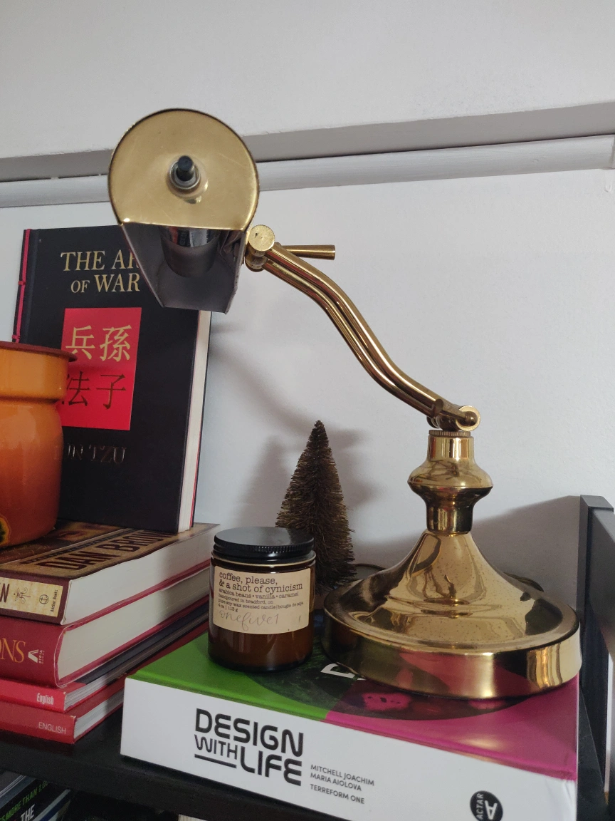 Vintage - Gold Bankers Desk Lamp with a flexible / adjustable arm. (measurements are rough because the lamp can be adjust).