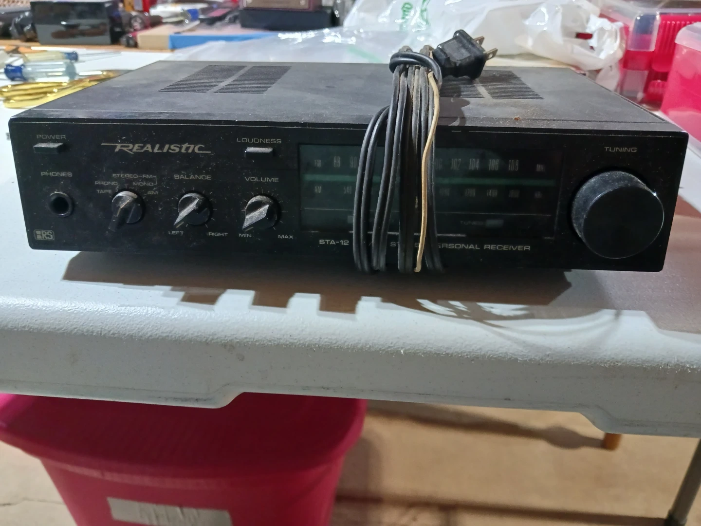 This is a Realistic STA-12 personal receiver. It features AM/FM tuning, volume, balance, and loudness controls. It also has inputs for phones, stereo-FM, mono, phono, and tape. It's a compact unit for personal listening! I only do pickup