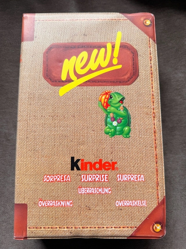 Rare Kinder Surprise set featuring 10 Happy Turtles: Marino, Calipso, Felix, Gnam Gnam, Flora, Amadeus, Batida, Colombo, Paco, and Robinson. Comes in a collectible case. All turtles are unopened. The set might be European. Very good condition, though the case has some small signs of aging. Pickup is at 147 Laird Drive.