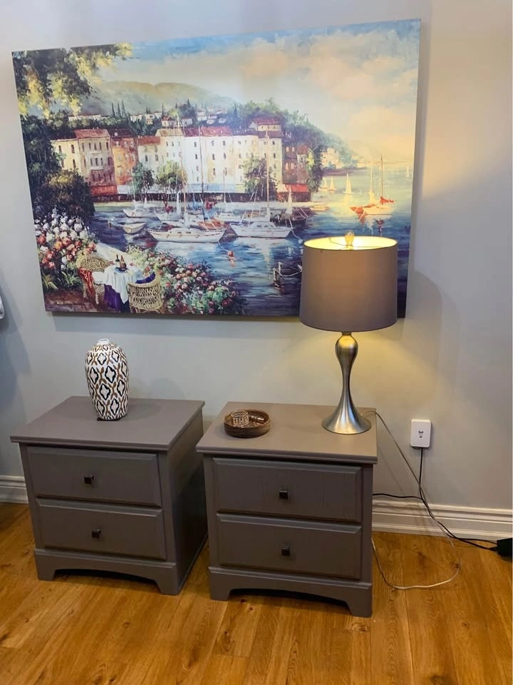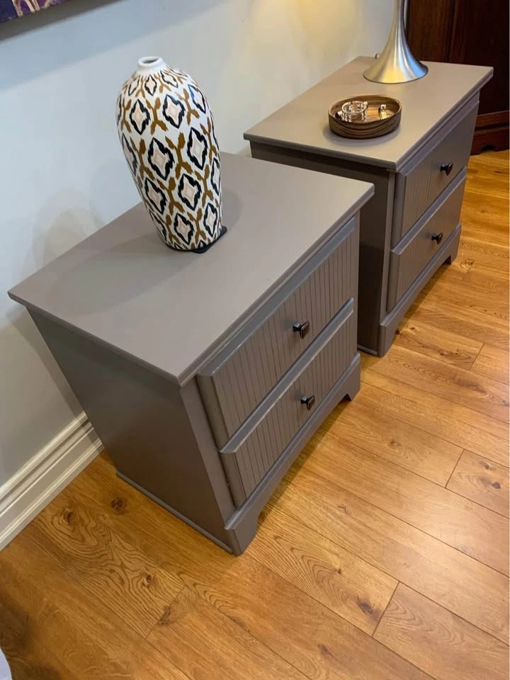 Wood night stands painted in the beautiful colour Elmwood by Fusion Mineral Paints. See sample colour in pictures.