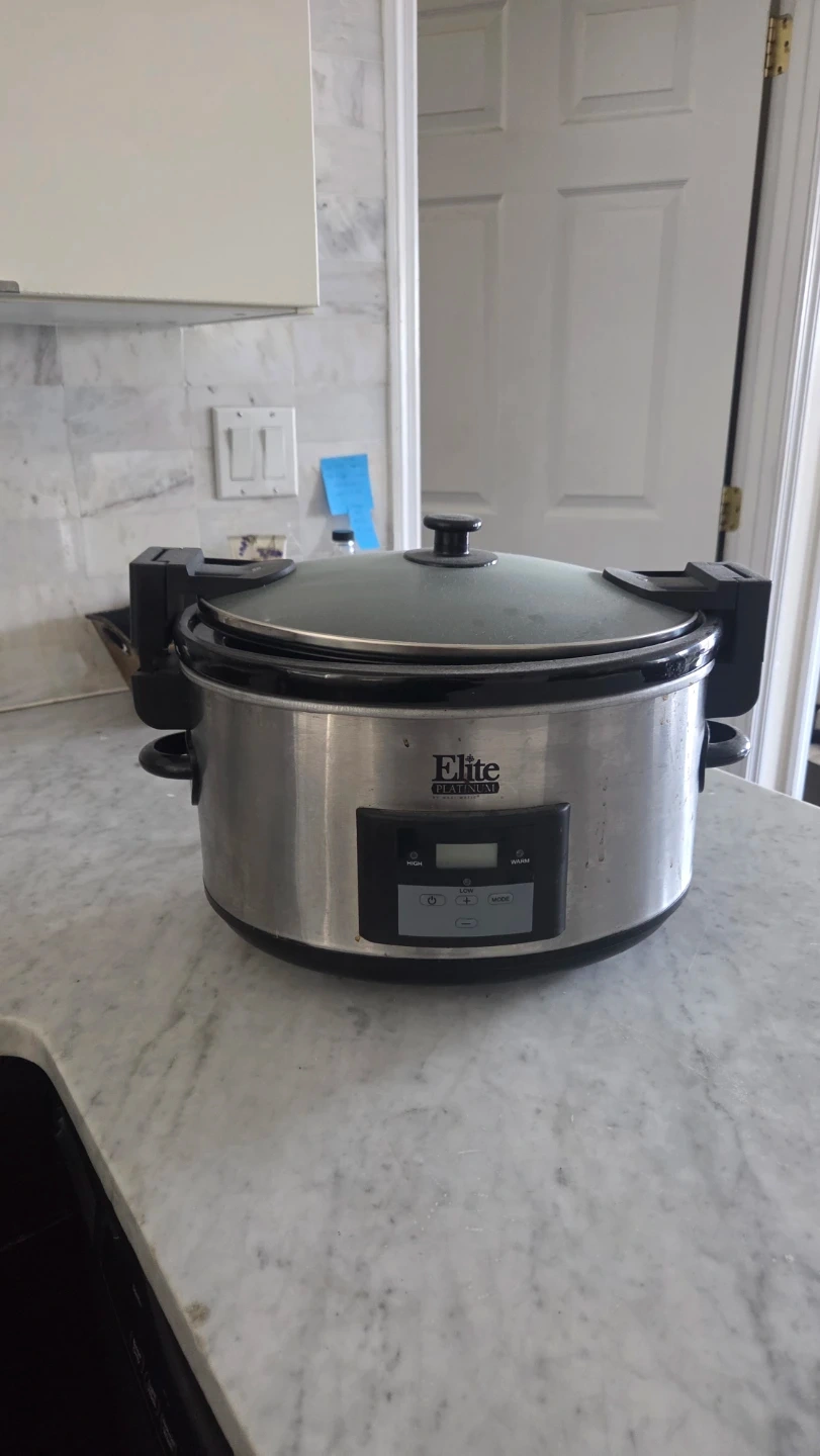 This Elite Platinum slow cooker has a digital display and multiple heat settings. It's a 6.5 quart capacity model. This is a household use only appliance.