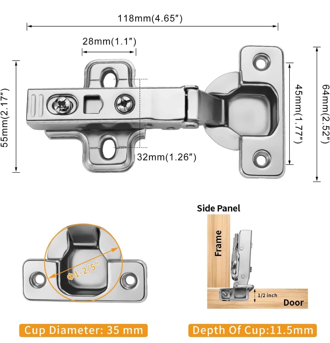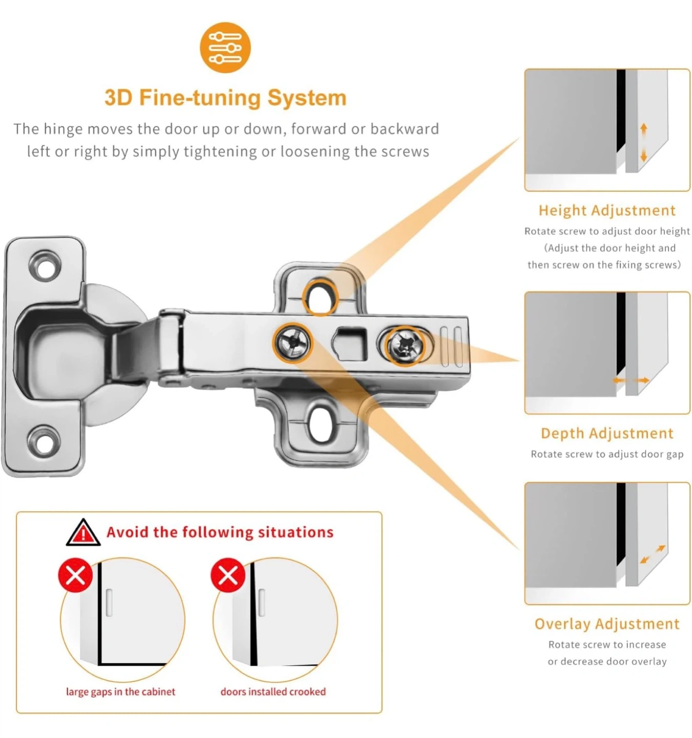 50 PCS Full Overlay Soft Close Hinges + Hinge Drilling Jig Set