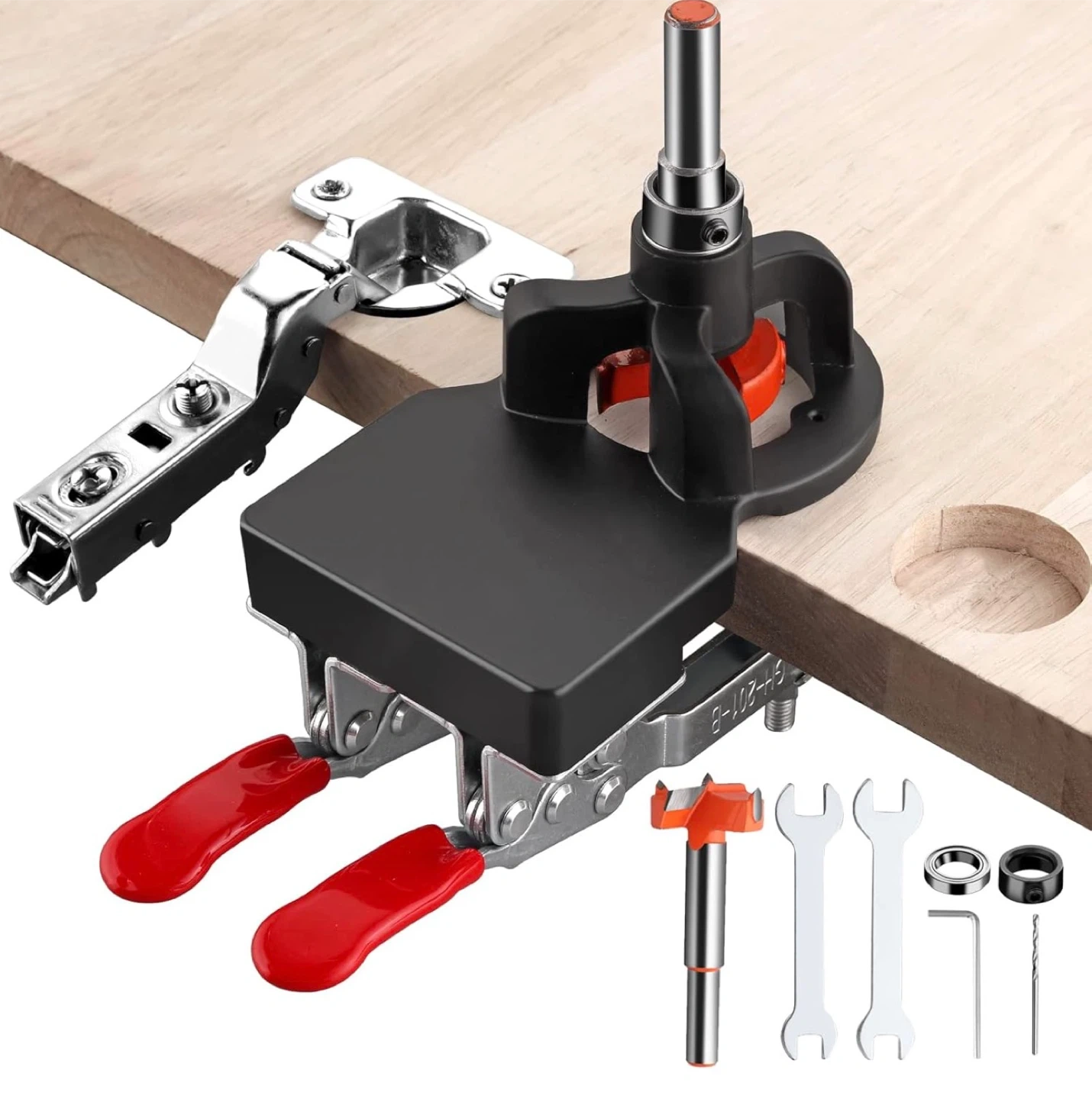 It also come with XUNTOP 35mm Concealed Hinge Drilling Jig Hole Set Durable Aluminum Alloy Concealed Door Hinge Jig Double Stable Fixed Clamps Drilling Guide DIY Tool for Wood Furniture Door Cabinets