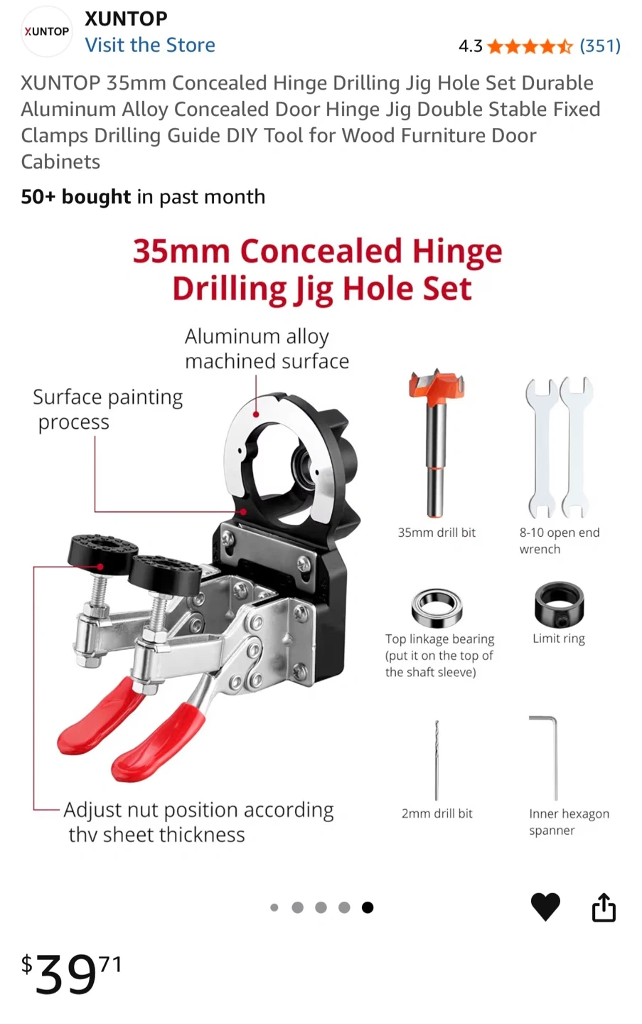 XUNTOP 35mm Concealed Hinge Drilling Jig Hole Set - $30
